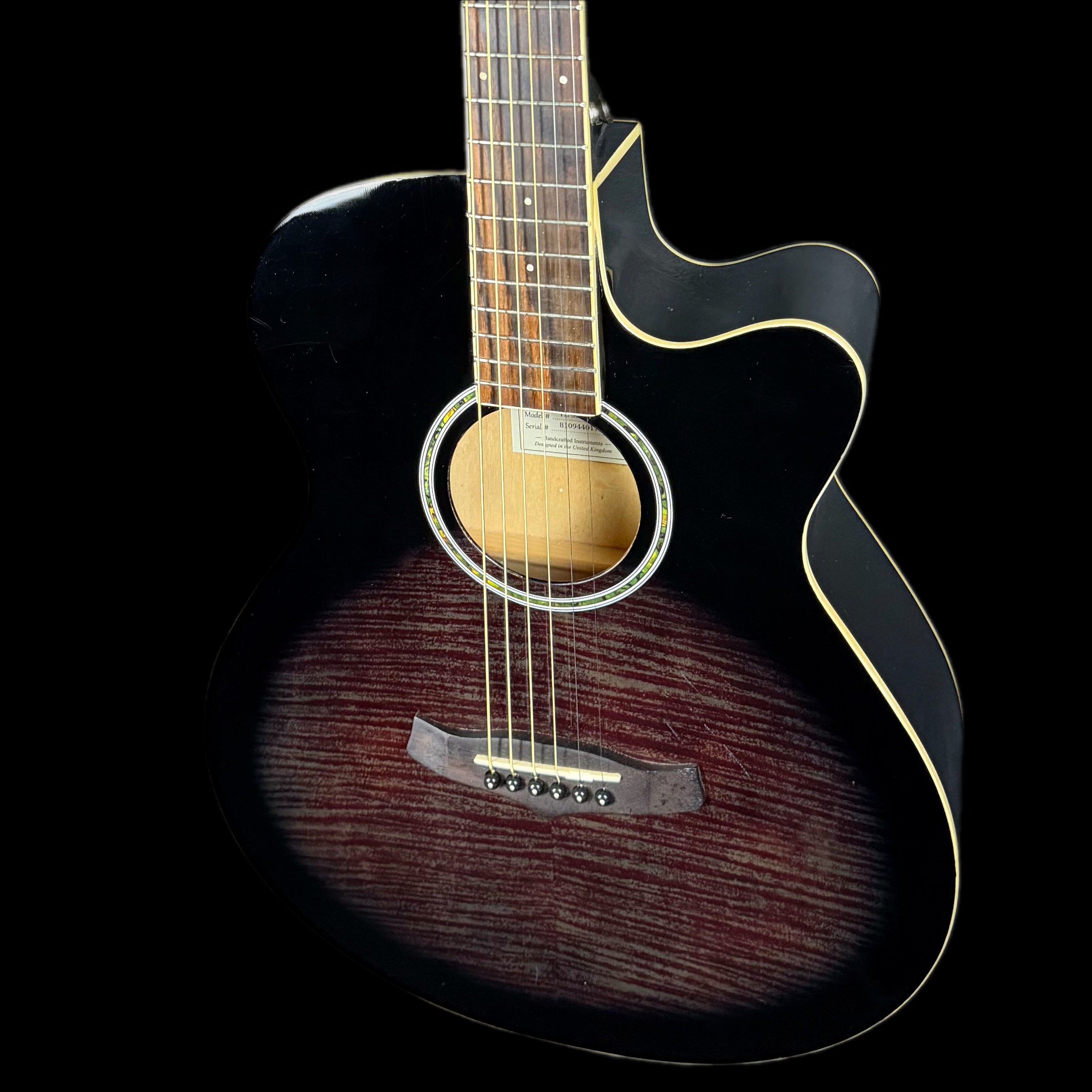 Pre-owned Tanglewood TL SFCE GBK Electro Acoustic Guitar finished in Gloss Black. The guitar is in overall good condition, showing some cosmetic blemishes to the body consistent with use. It has been fully set up in-house and fitted with brand new strings, so it’s ready to play straight away.