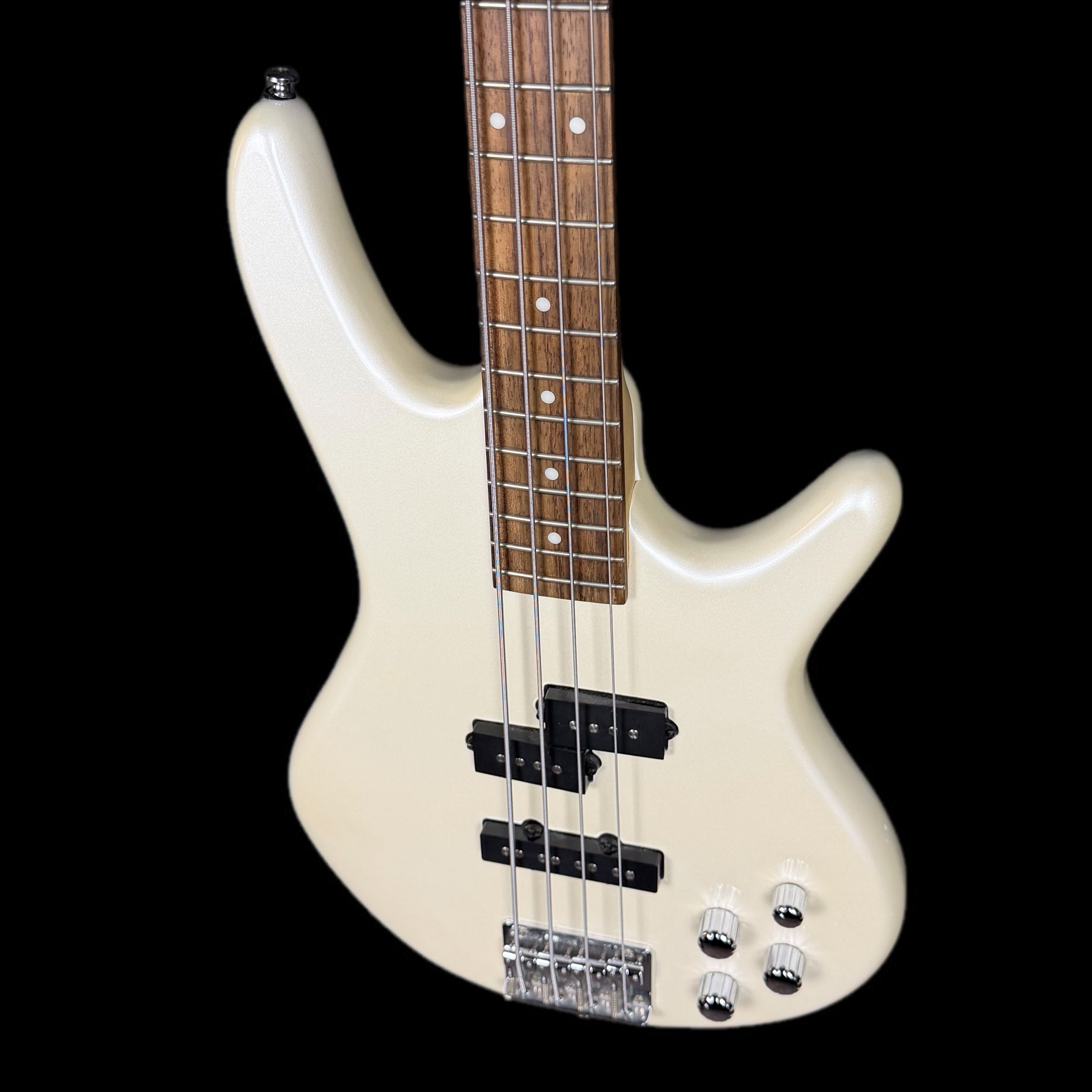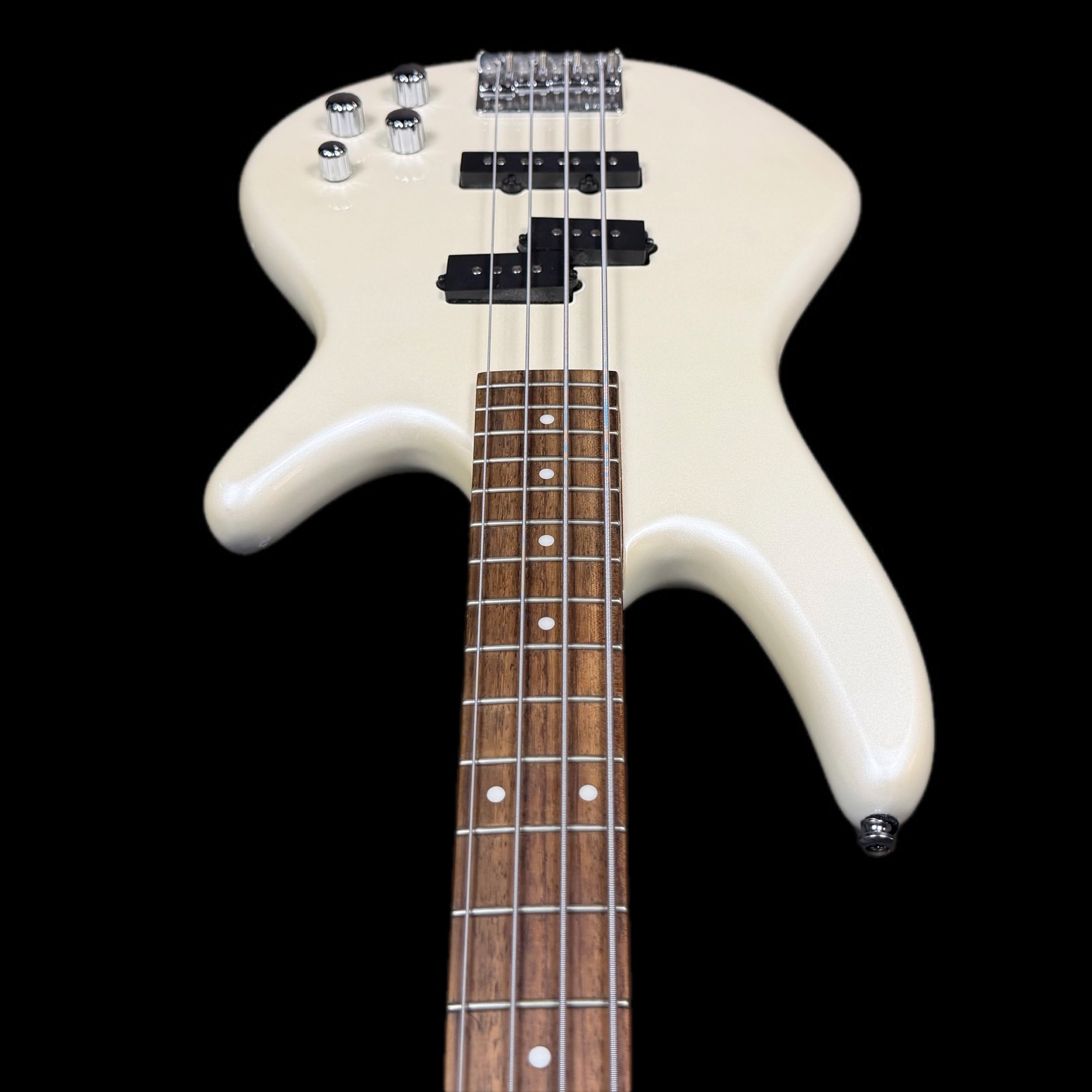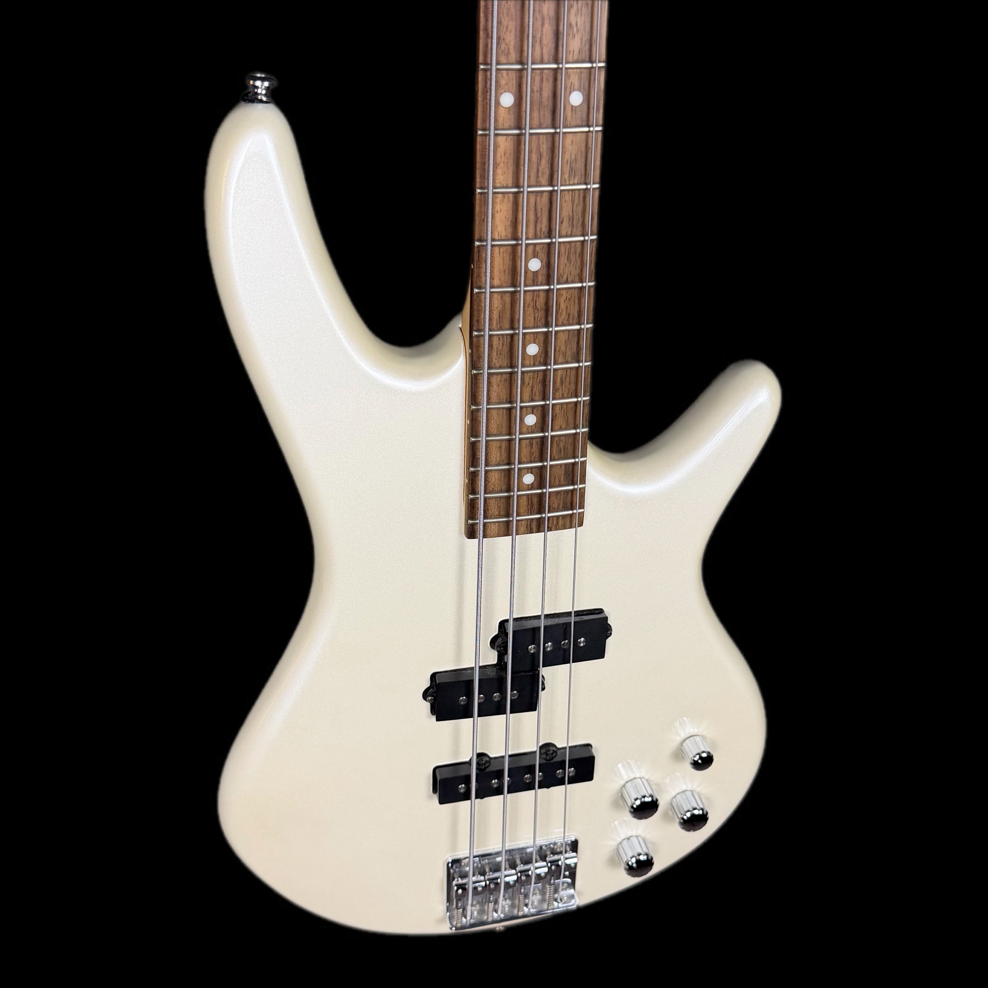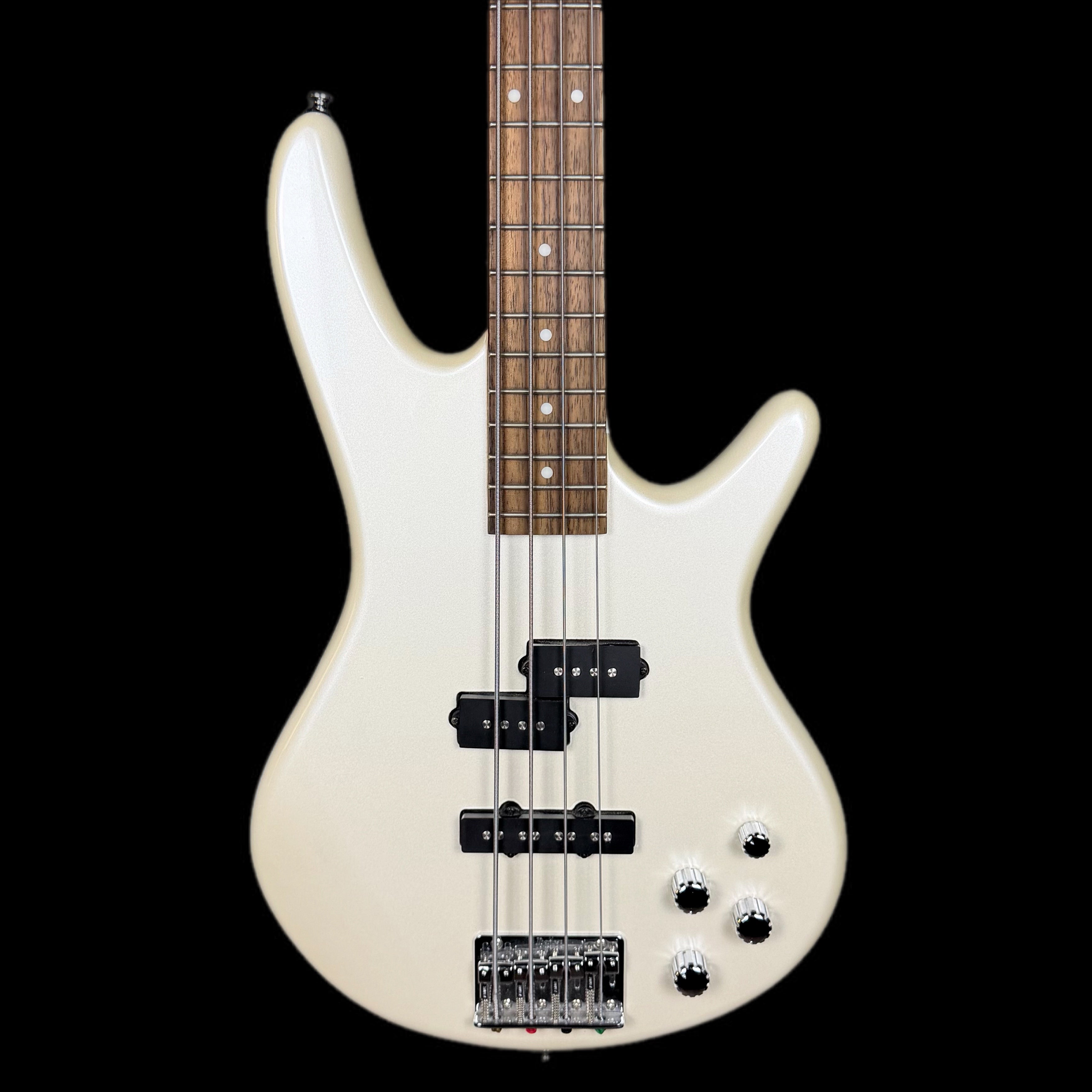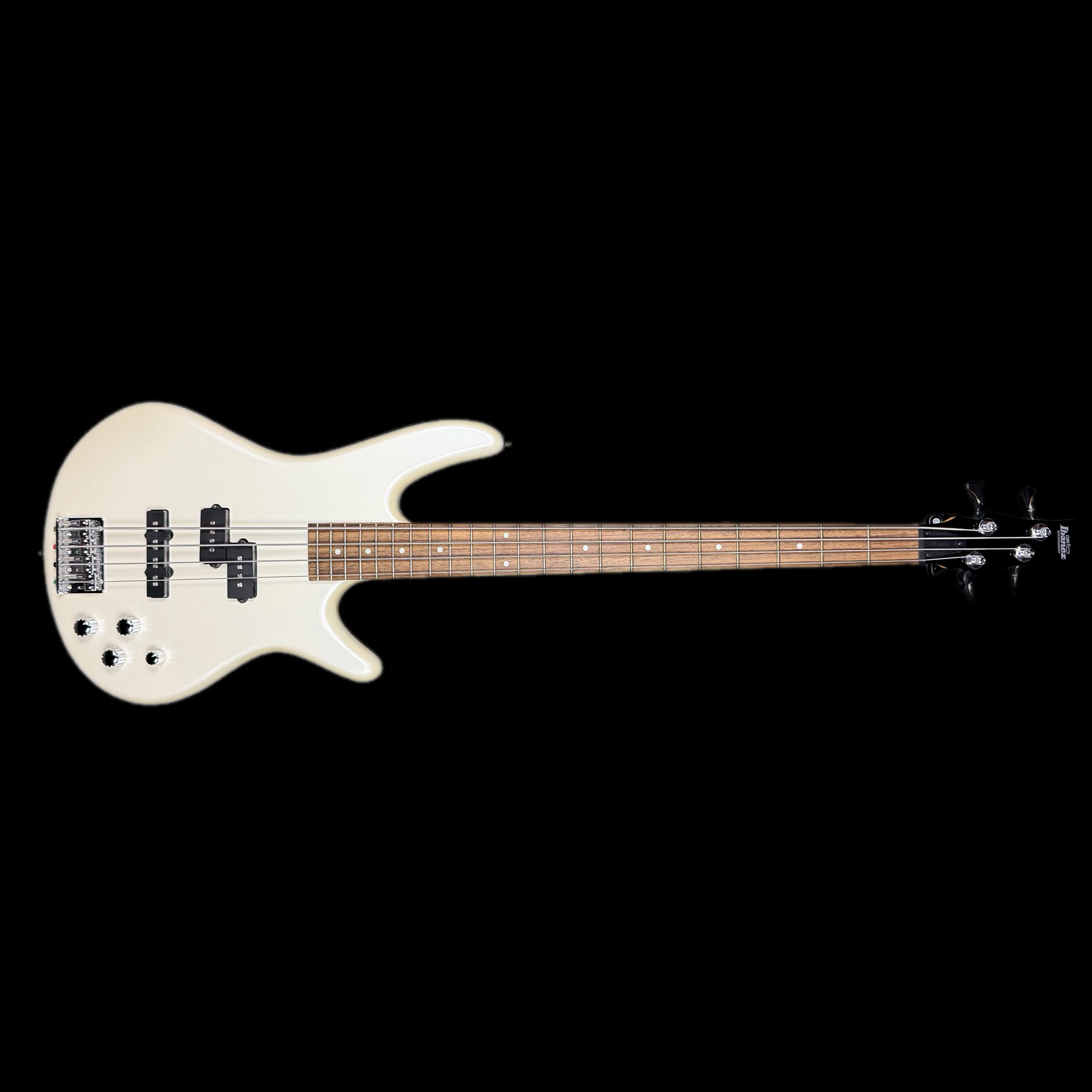 The Ibanez GSR200 in Pearl White (GSR200PW) is a popular, affordable 4-string entry-level bass from the Ibanez GIO series, known for its comfortable Soundgear body, maple neck, and active Phat II bass boost for extra low-end power, featuring Powersound pickups for full tones, making it a solid choice for beginners seeking playability and punchy sound.