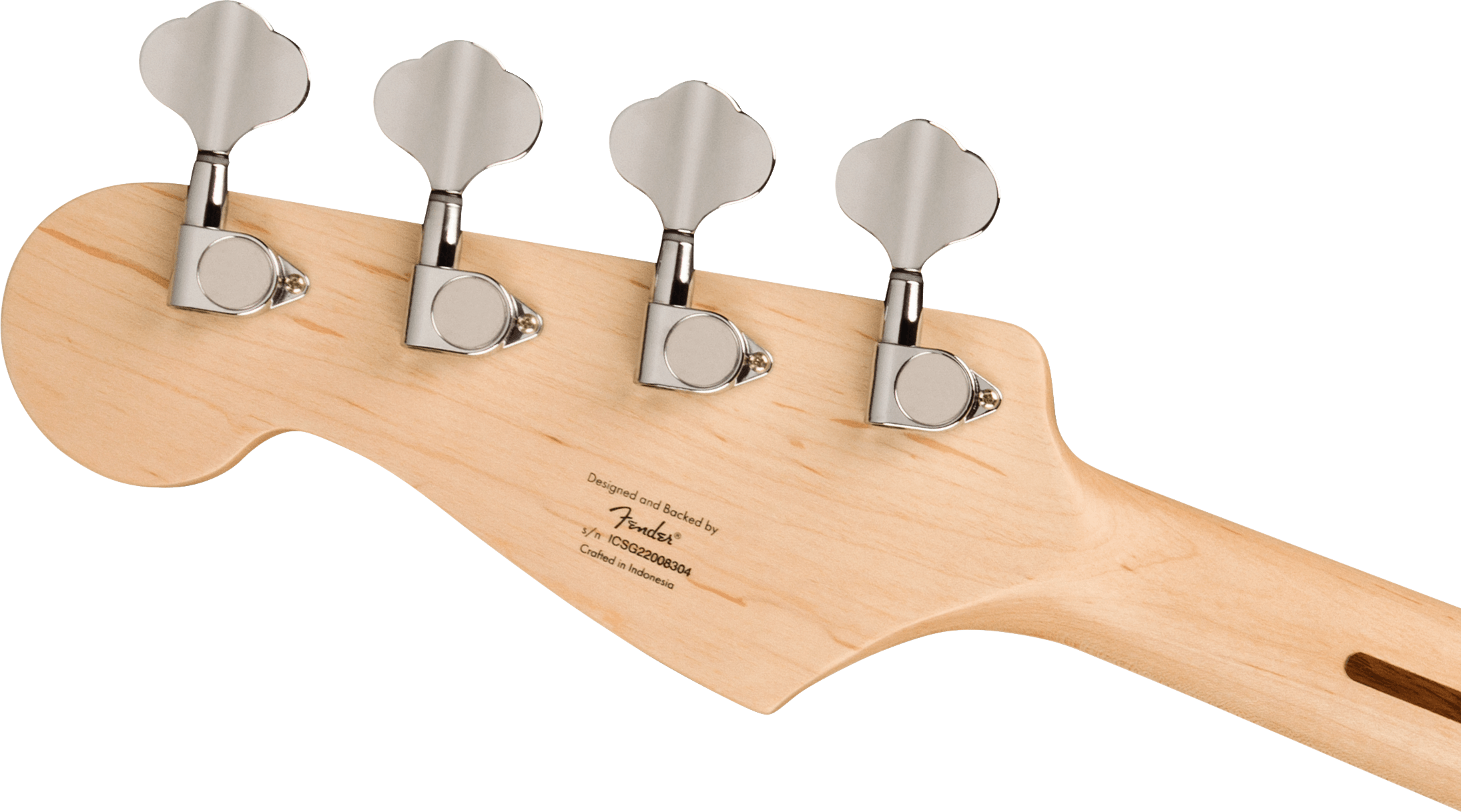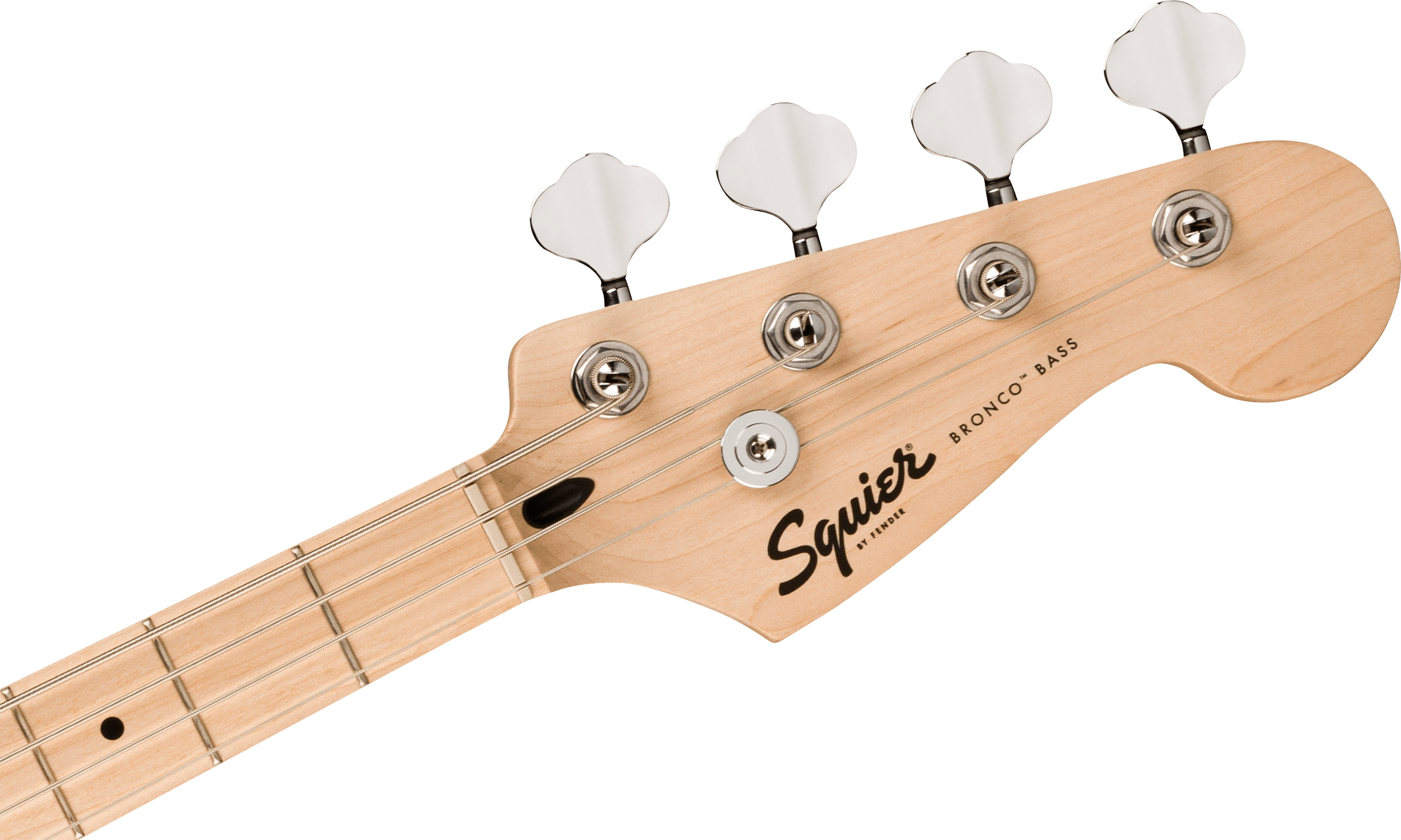 The Squier Sonic® Bronco® Bass is ready to launch any musical adventure into warp speed, offering iconic Fender® style and inspiring tone for players at any stage. This Bronco Bass sports a slim and inviting "C"-shaped neck profile with a narrow 1.5" nut width and a thin, lightweight body for optimal playing comfort while a Squier® single-coil pickup delivers punchy bass tone. Further details of this model include a short 30" scale length, 4-saddle hardtail bridge for precise intonation adjustment, sealed-gear tuning machines for smooth, accurate tuning and durable chrome-plated hardware that is sure to catch the spotlight.