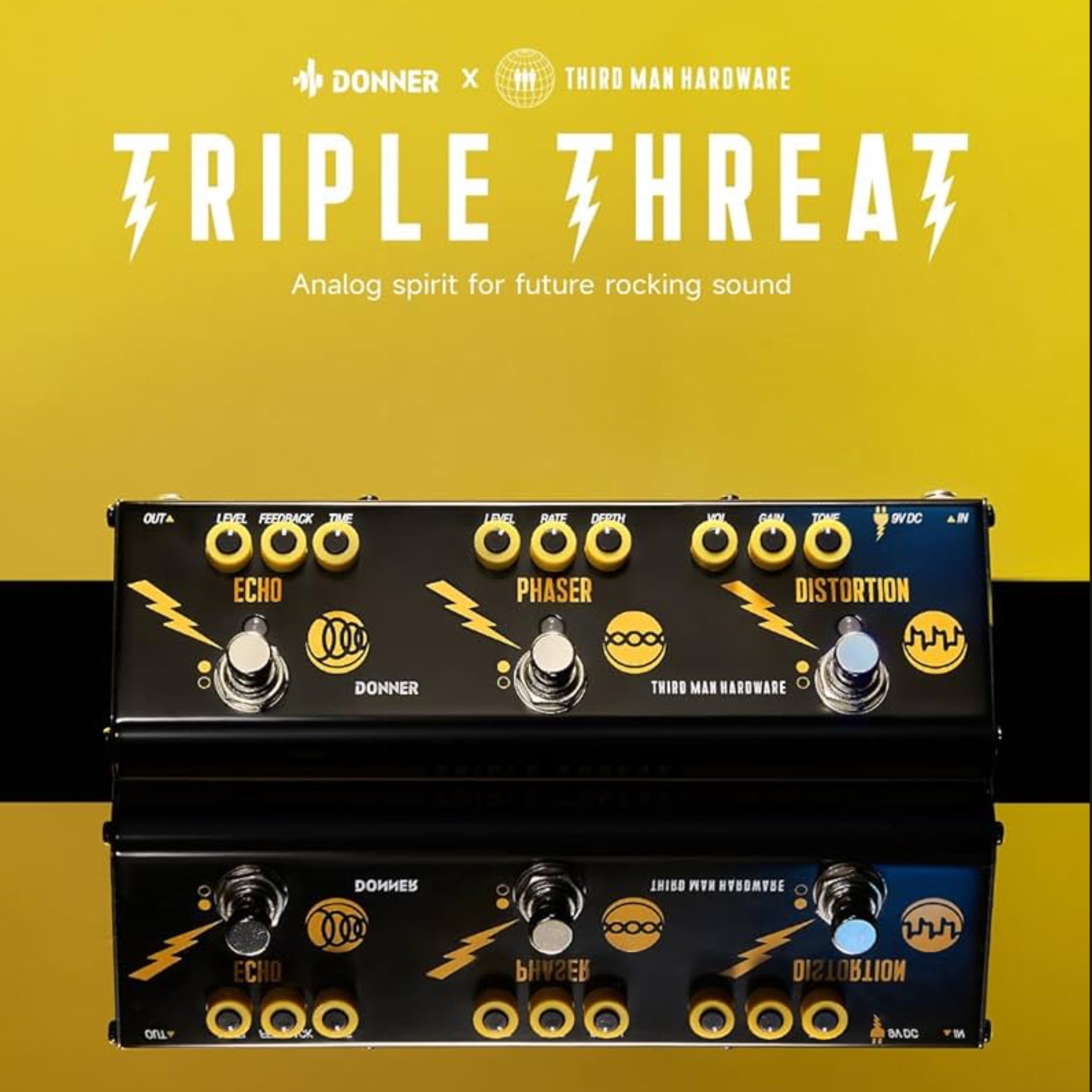 Donner x Third Man Hardware – Triple Threat analog multi-effects pedal with classic Third Man design, built for stage and studio. - 3-in-1 Effects – Combines Distortion, Phaser, and Echo for versatile analog tones, suitable for all skill levels.