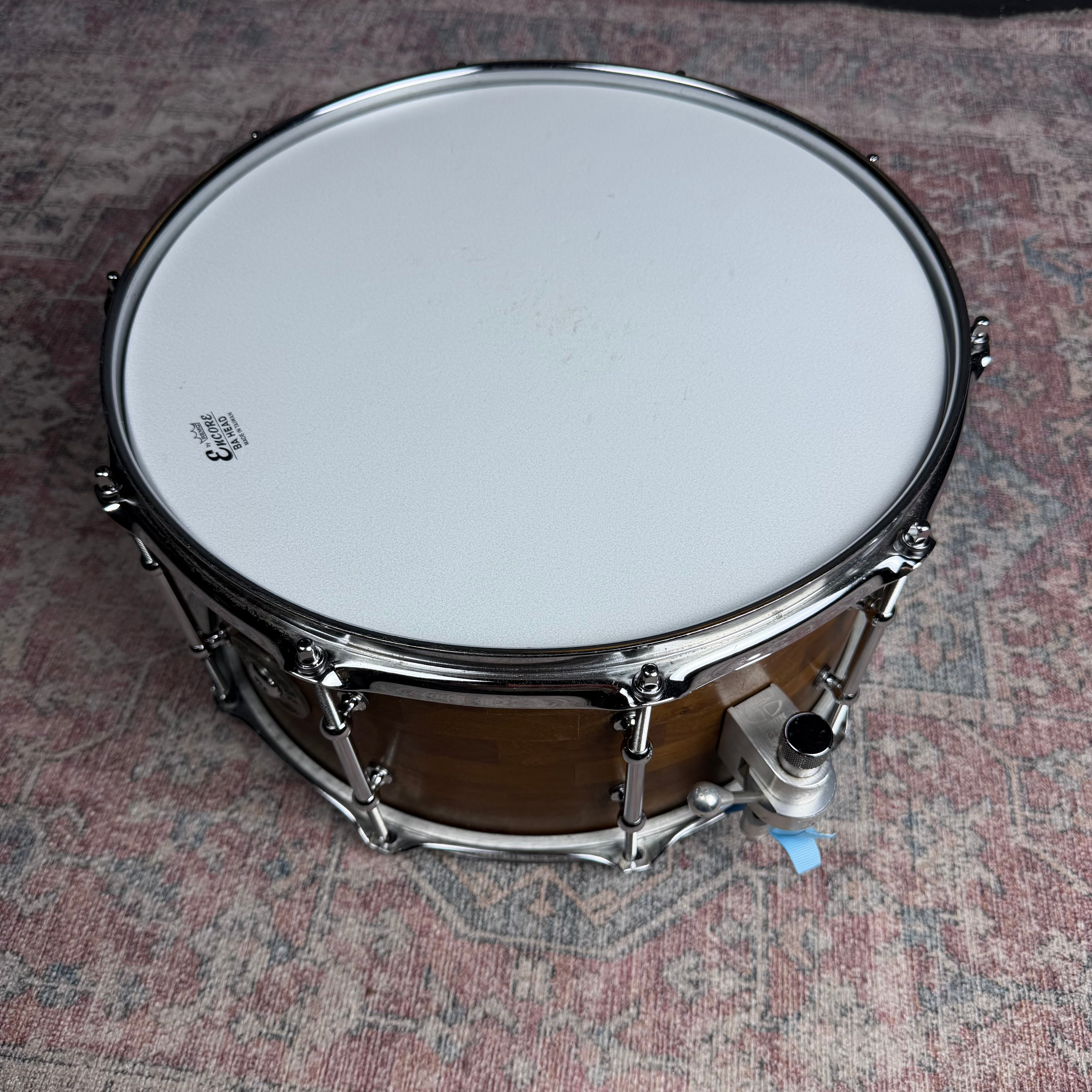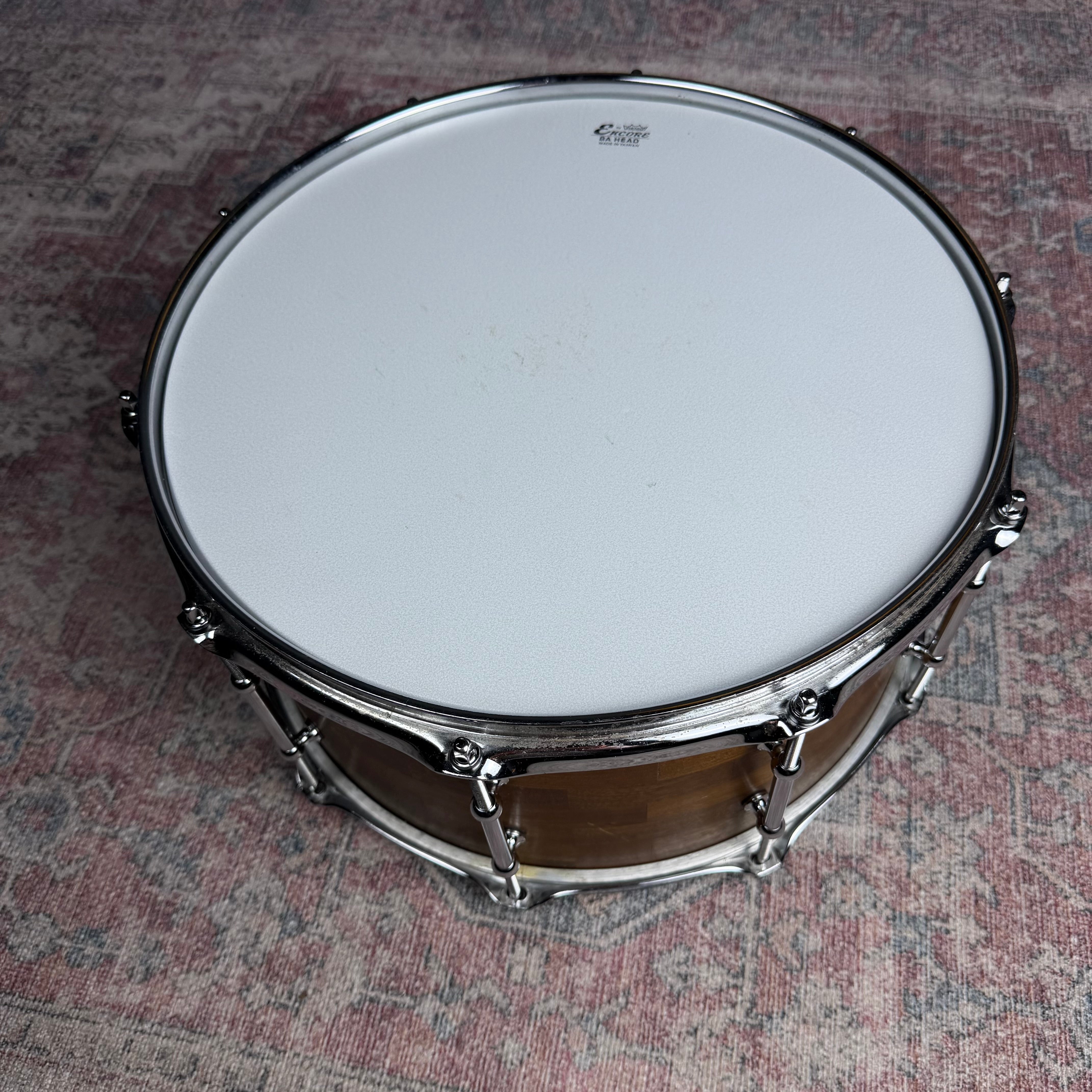 This 2009 Ichorus stave block snare is a rare opportunity to own a thoughtfully built instrument from a defunct boutique maker—an understated, professional-grade drum designed to be played, not merely displayed.