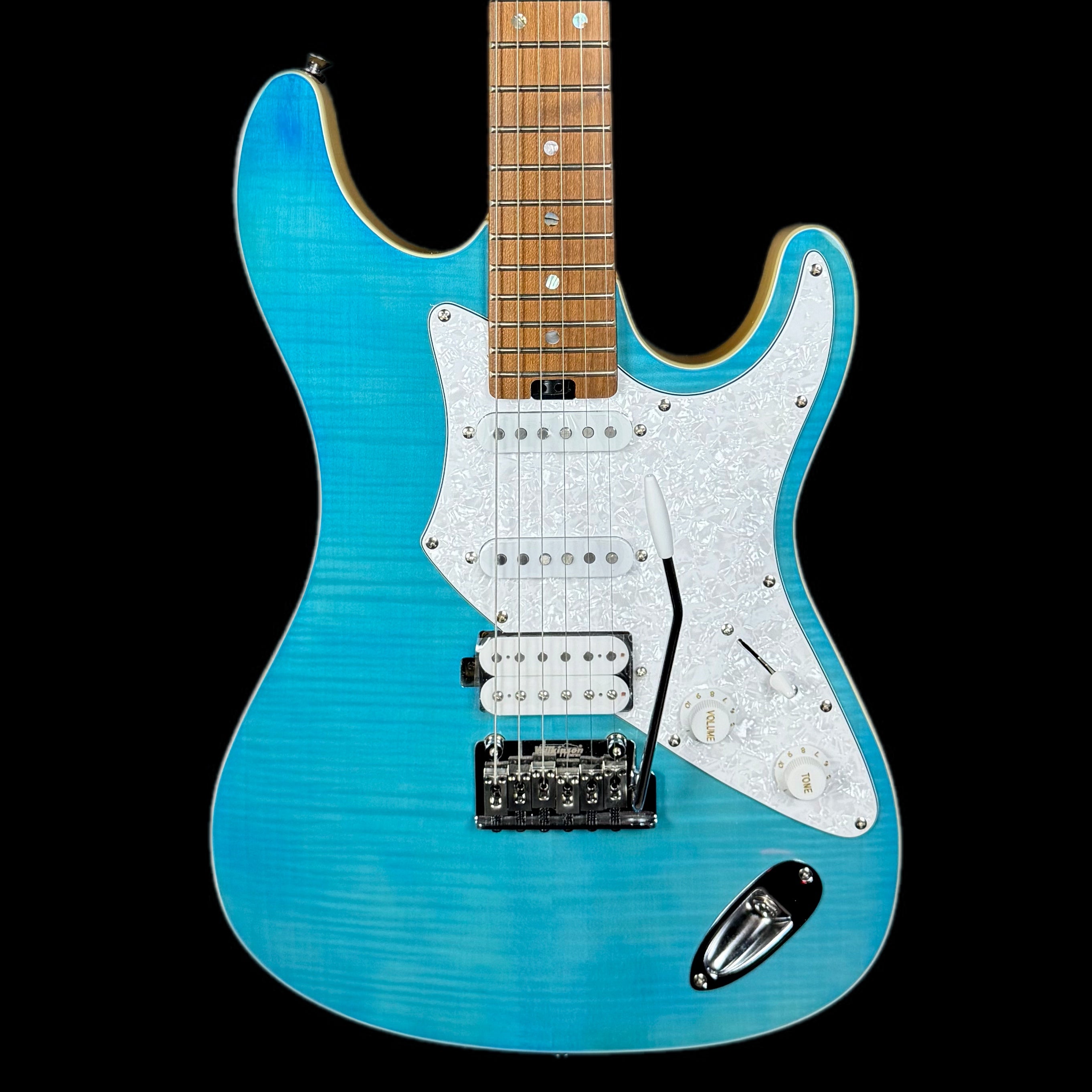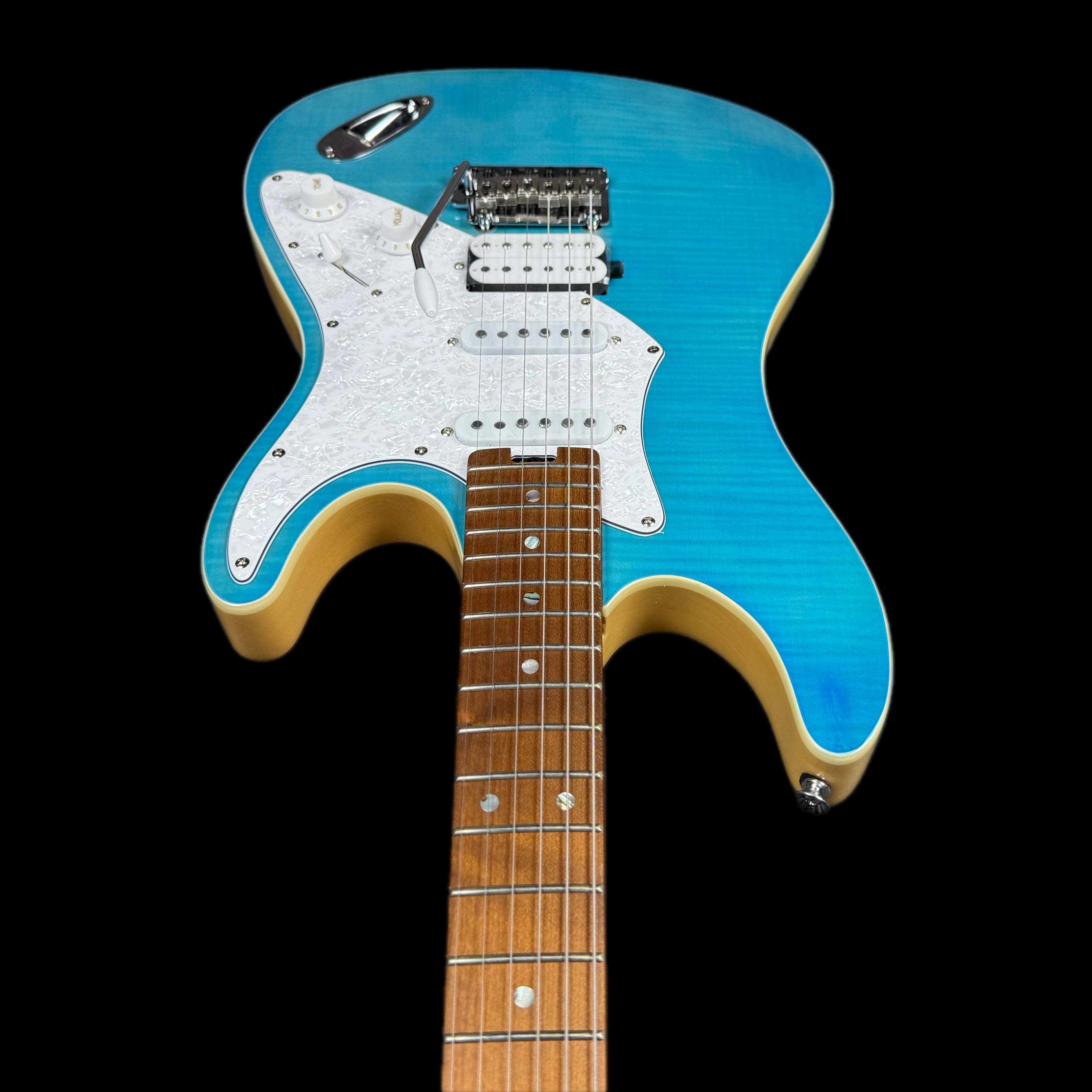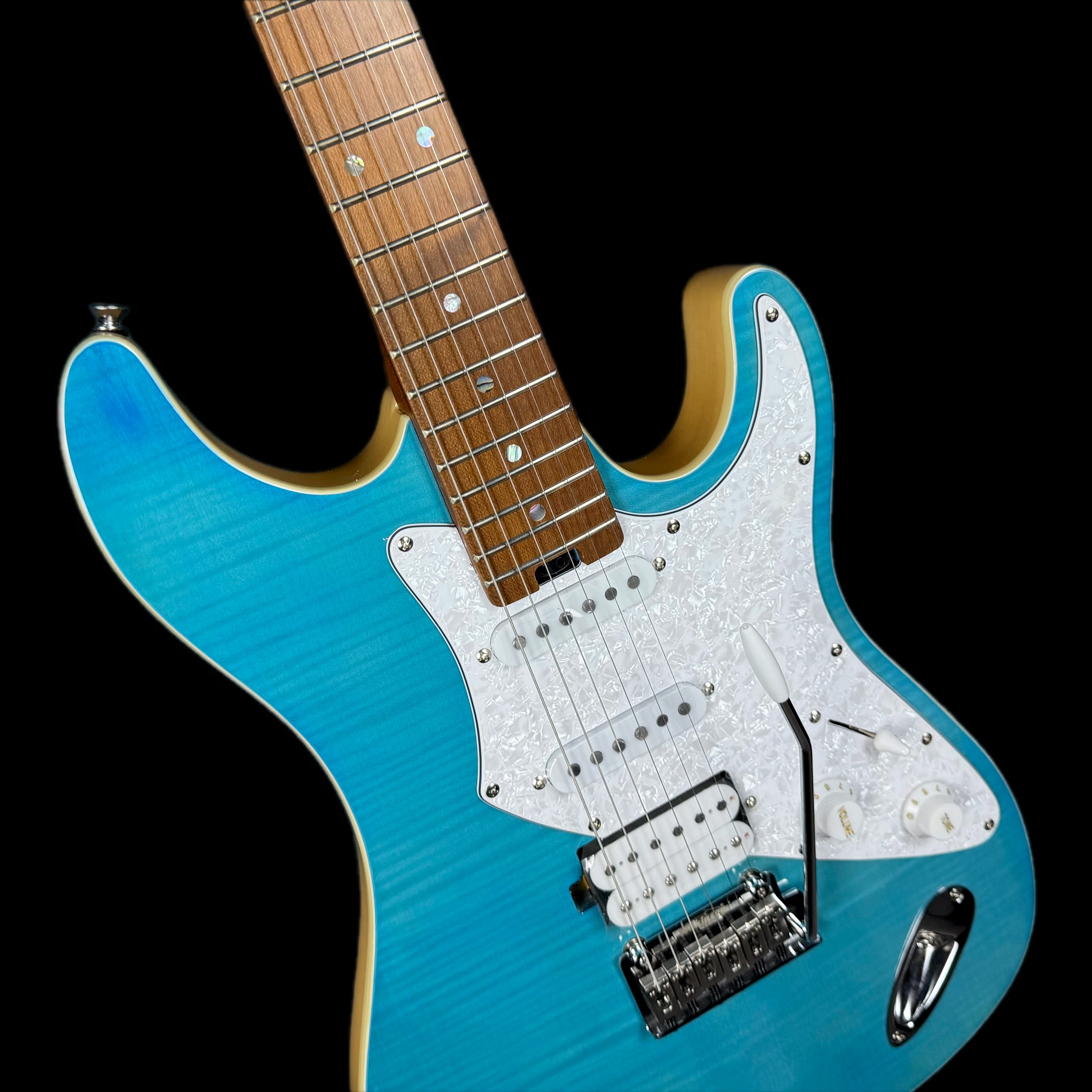 Roasted maple neck and fingerboard generate a superior tone that’s boosted by alnico-5 pickups. Wilkinson bridge enables you to have a silky smooth tremolo action.