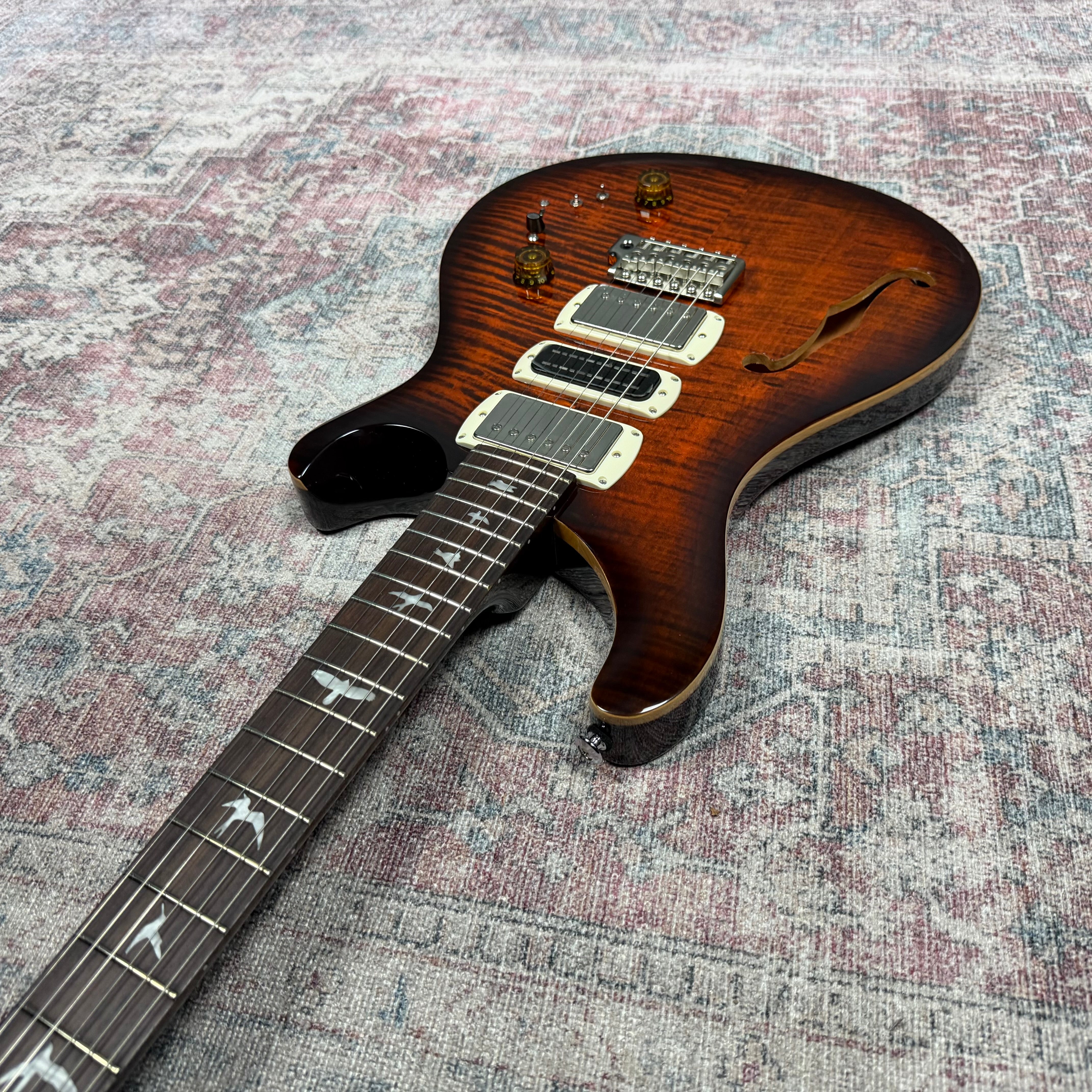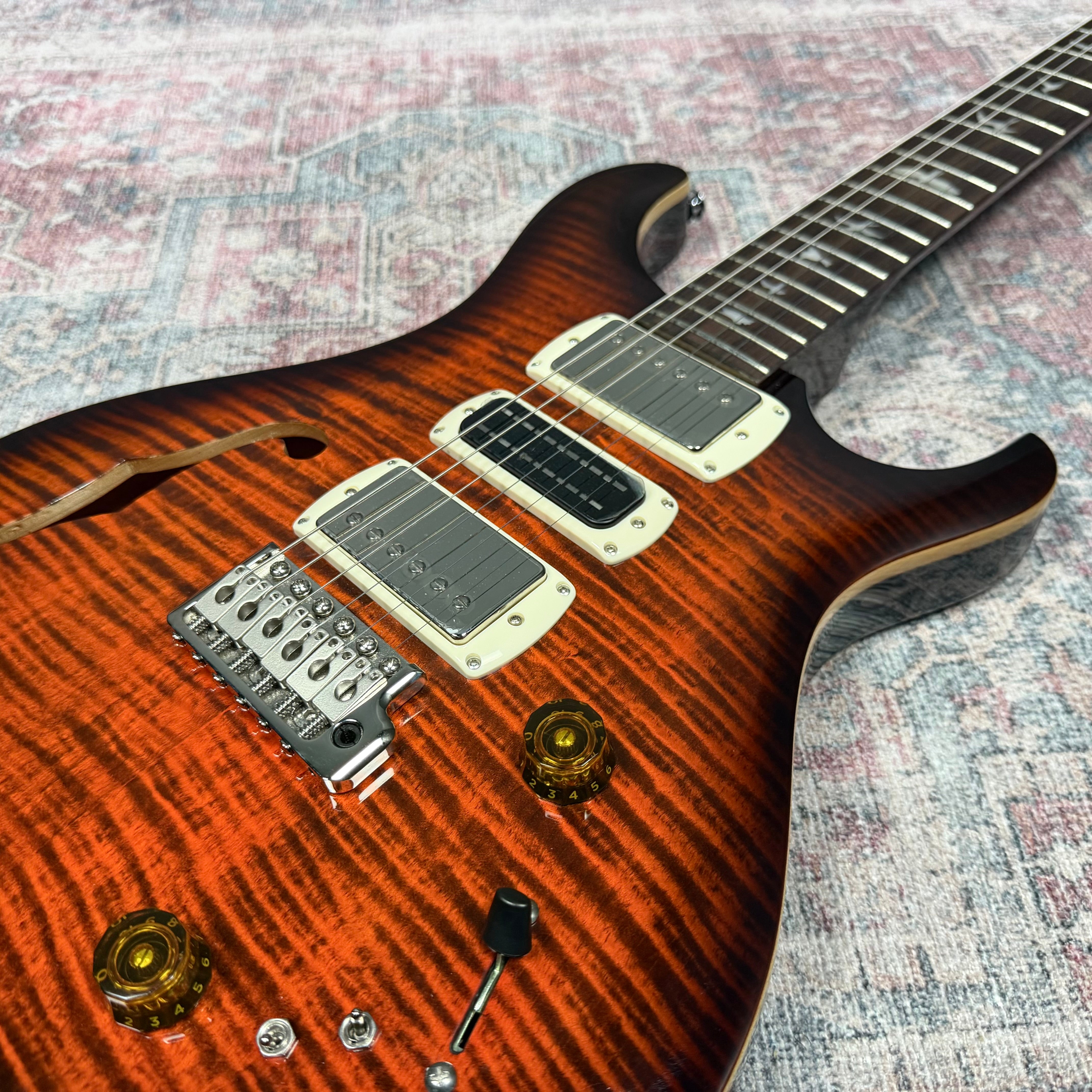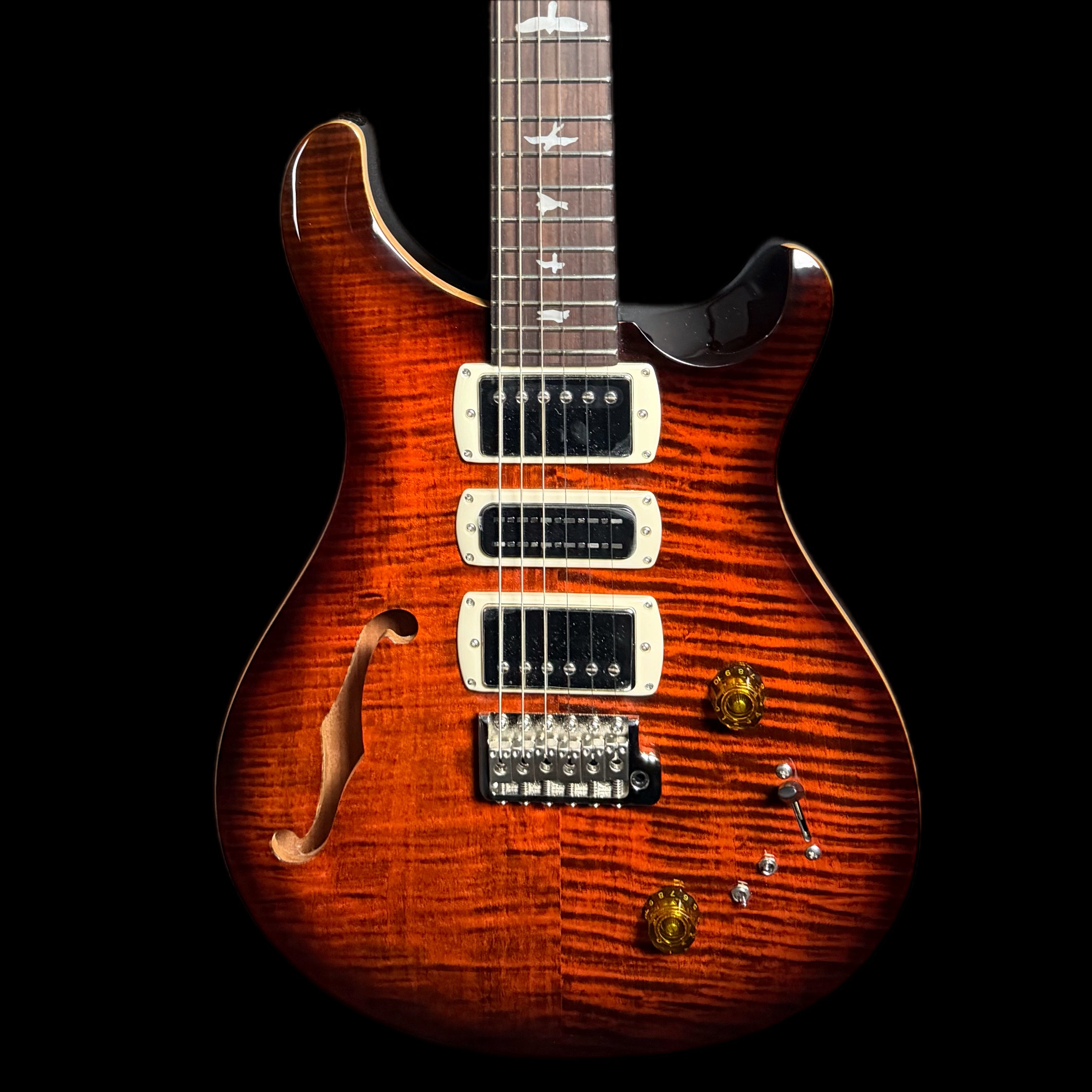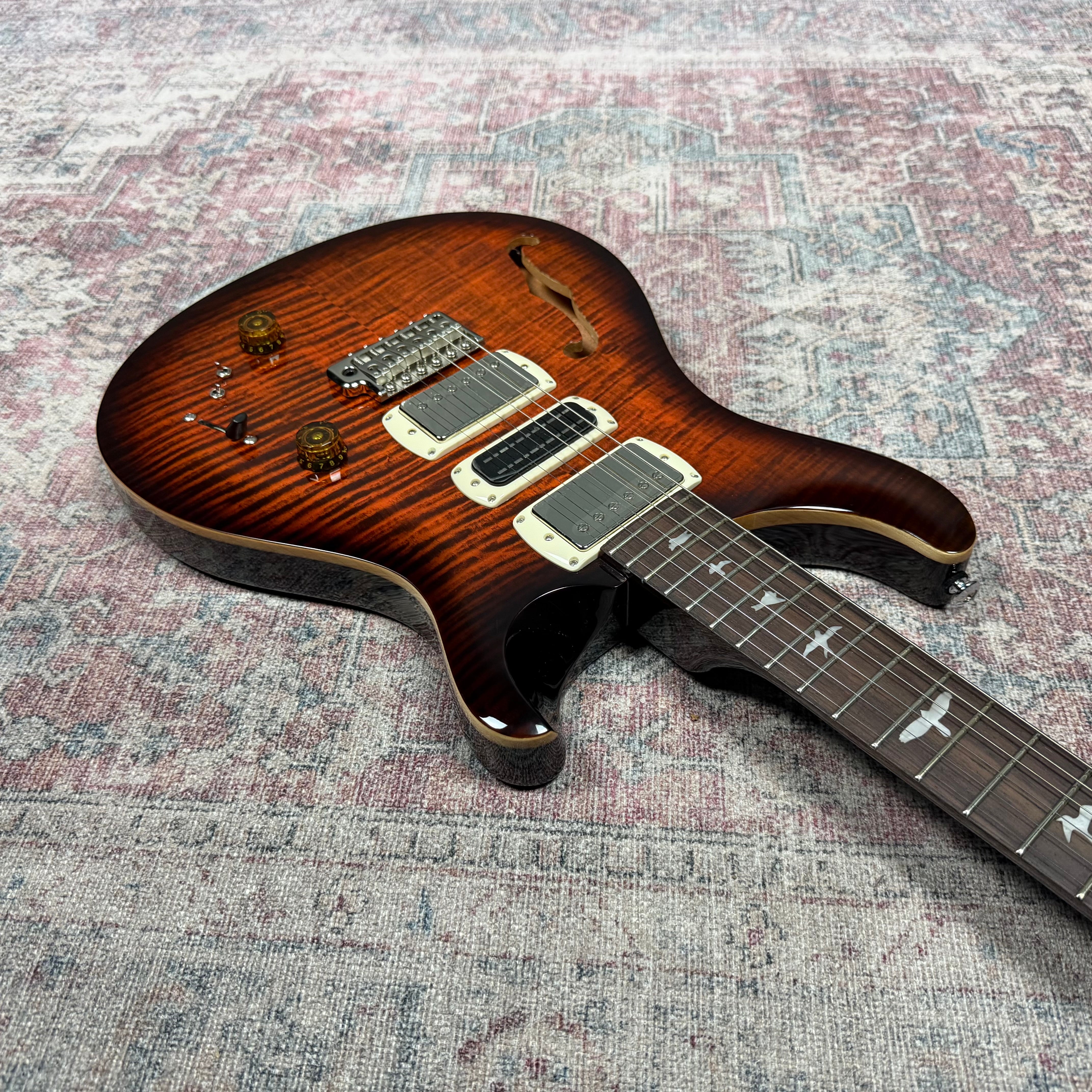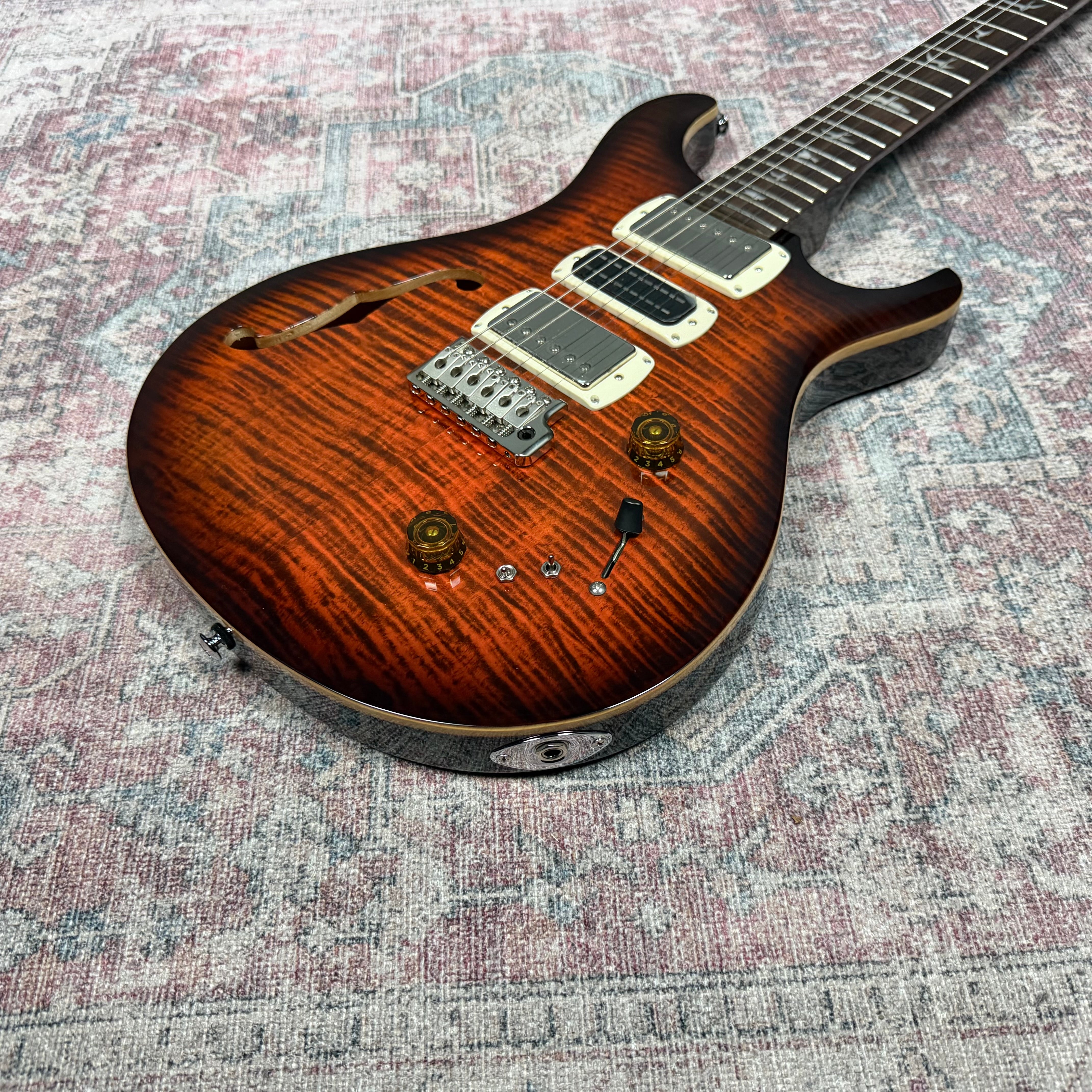 Equipped with a pair of 58/15 LT "S" pickups and a PRS Narrowfield DD "S" in the middle position, the SE Special Semi-Hollow provides a wide range of tonal options. The coil-tap system allows players to switch between full humbucker tones and articulate single-coil sounds, making the guitar suitable for genres including jazz, blues, rock, and pop. With twelve possible pickup configurations, it delivers consistent flexibility whether in the studio or on stage, ensuring players can easily adapt their sound to different musical settings.