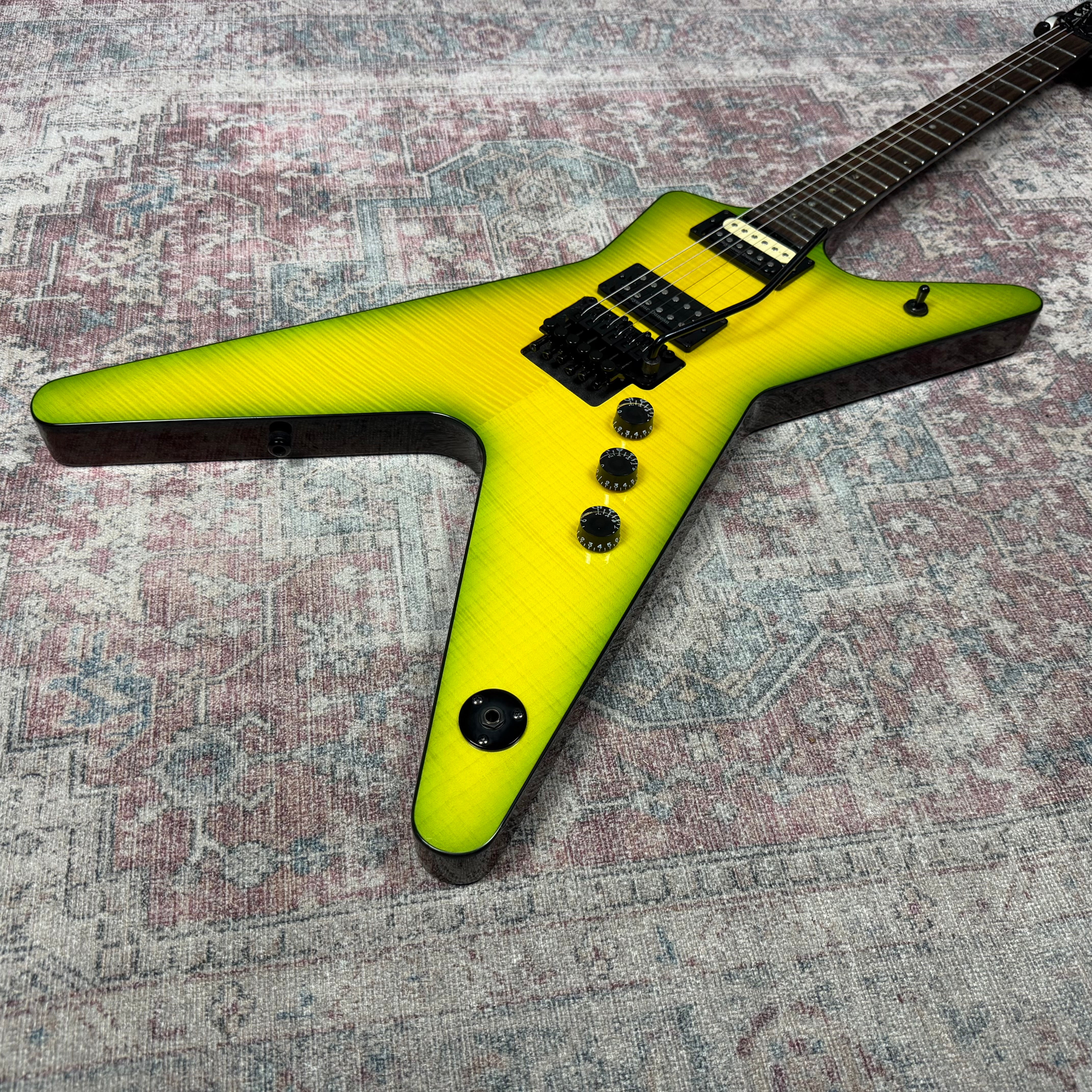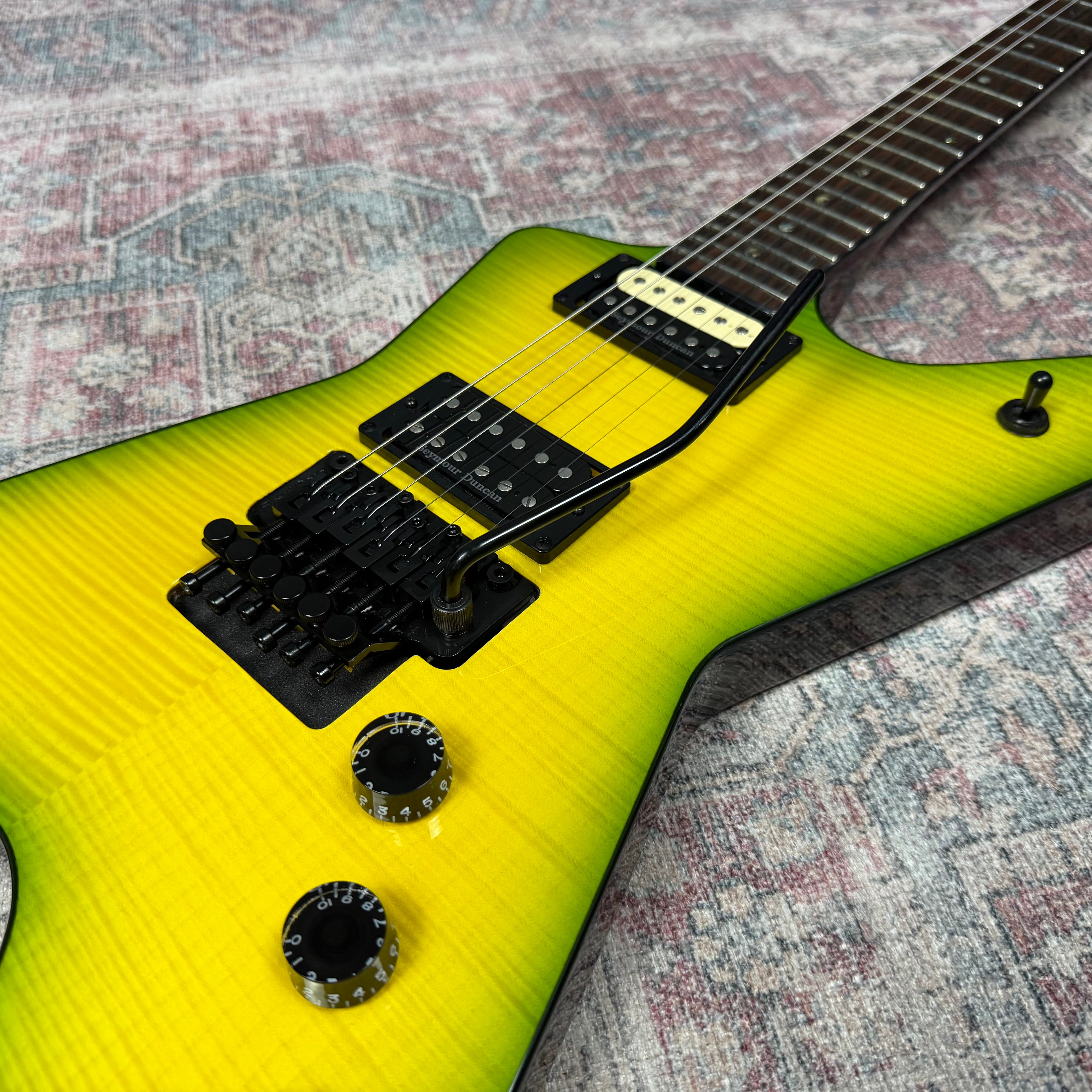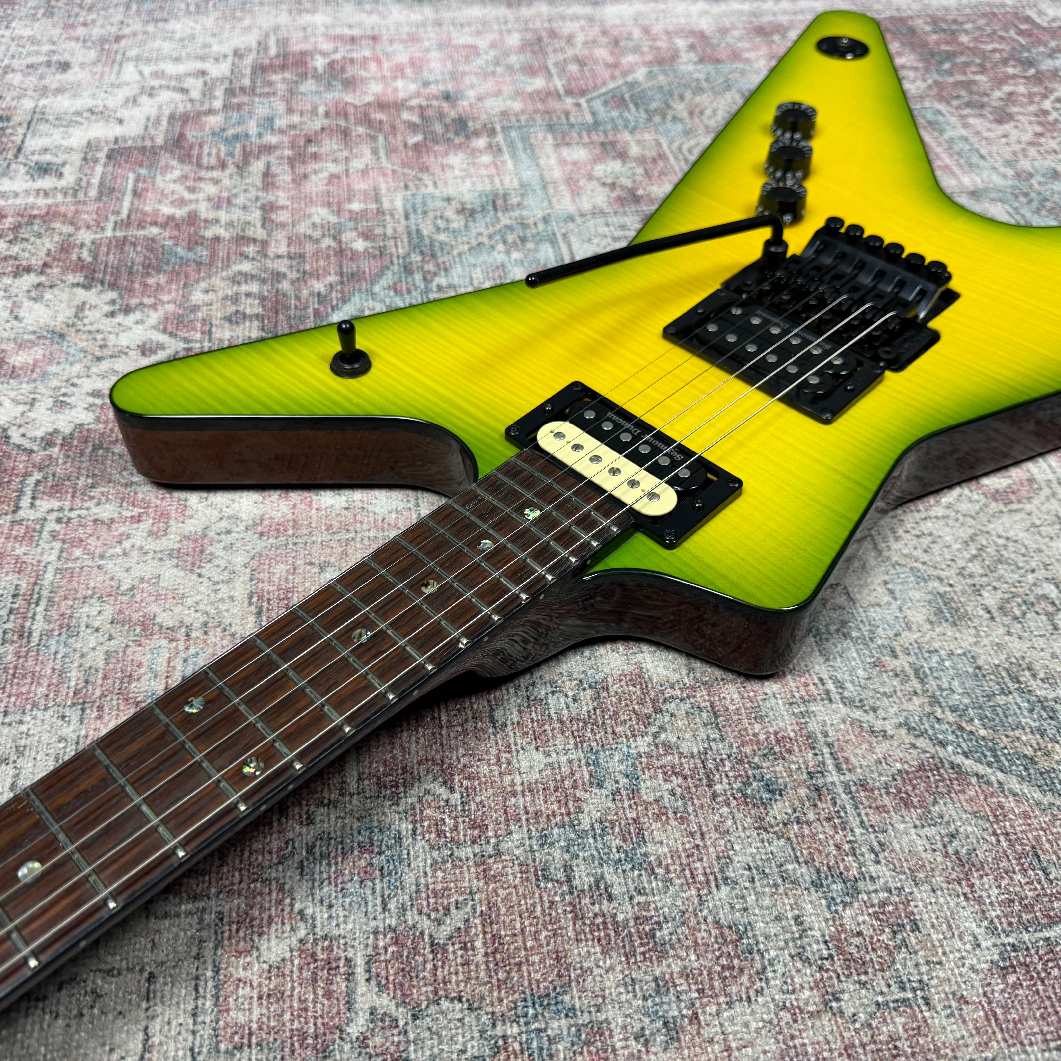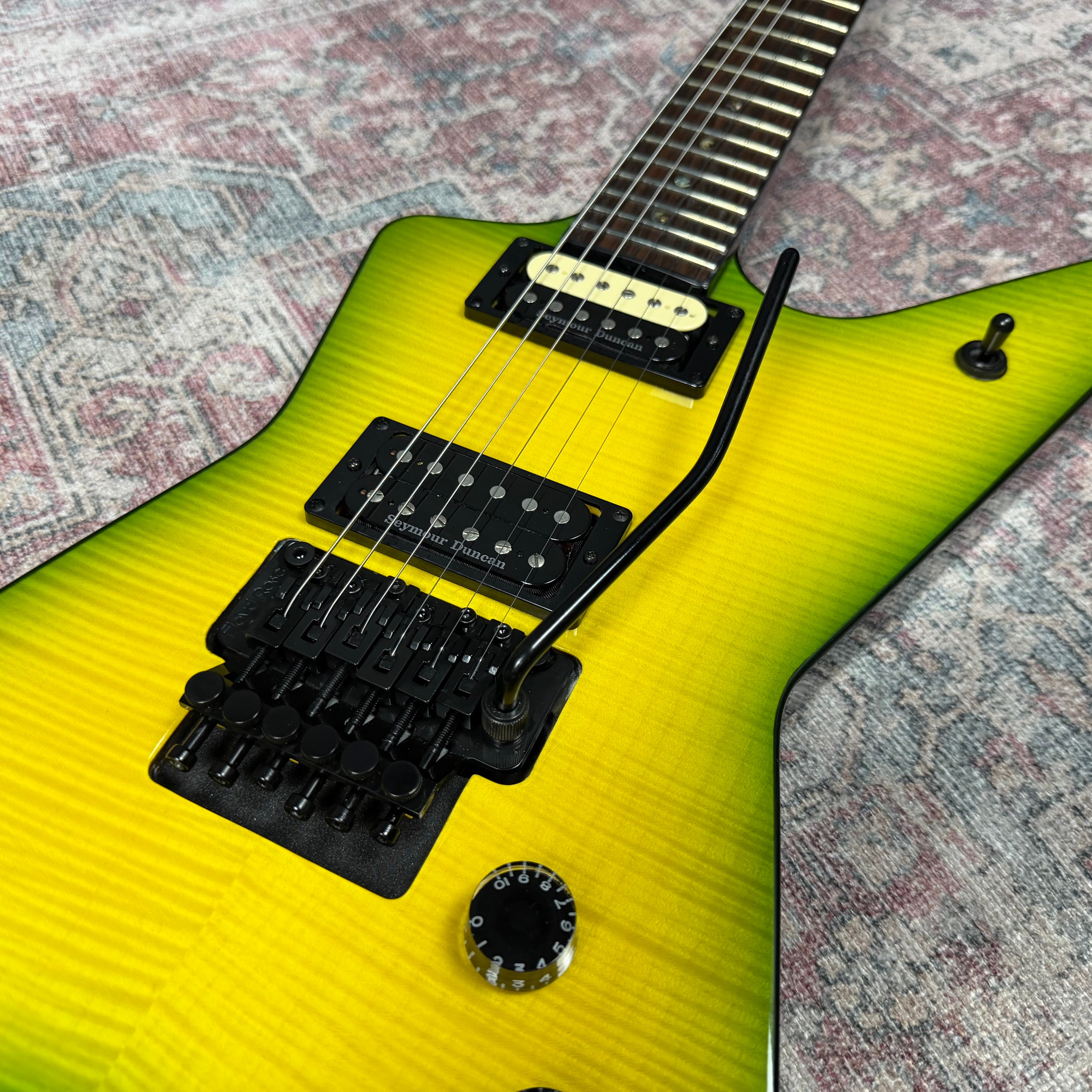 The eastern mahogany body and stunning flamed maple top provide great overall tone and sustain. It covers all the bases on everything from blues to classic rock to metal. Featuring a Floyd Rose Special tremolo, Seymour Duncan JB and 59 humbuckers, 22 jumbo frets and a set mahogany neck. The ML79 is also a joy to play, with a comfortable V profile medium neck, great intonation, and superb action.