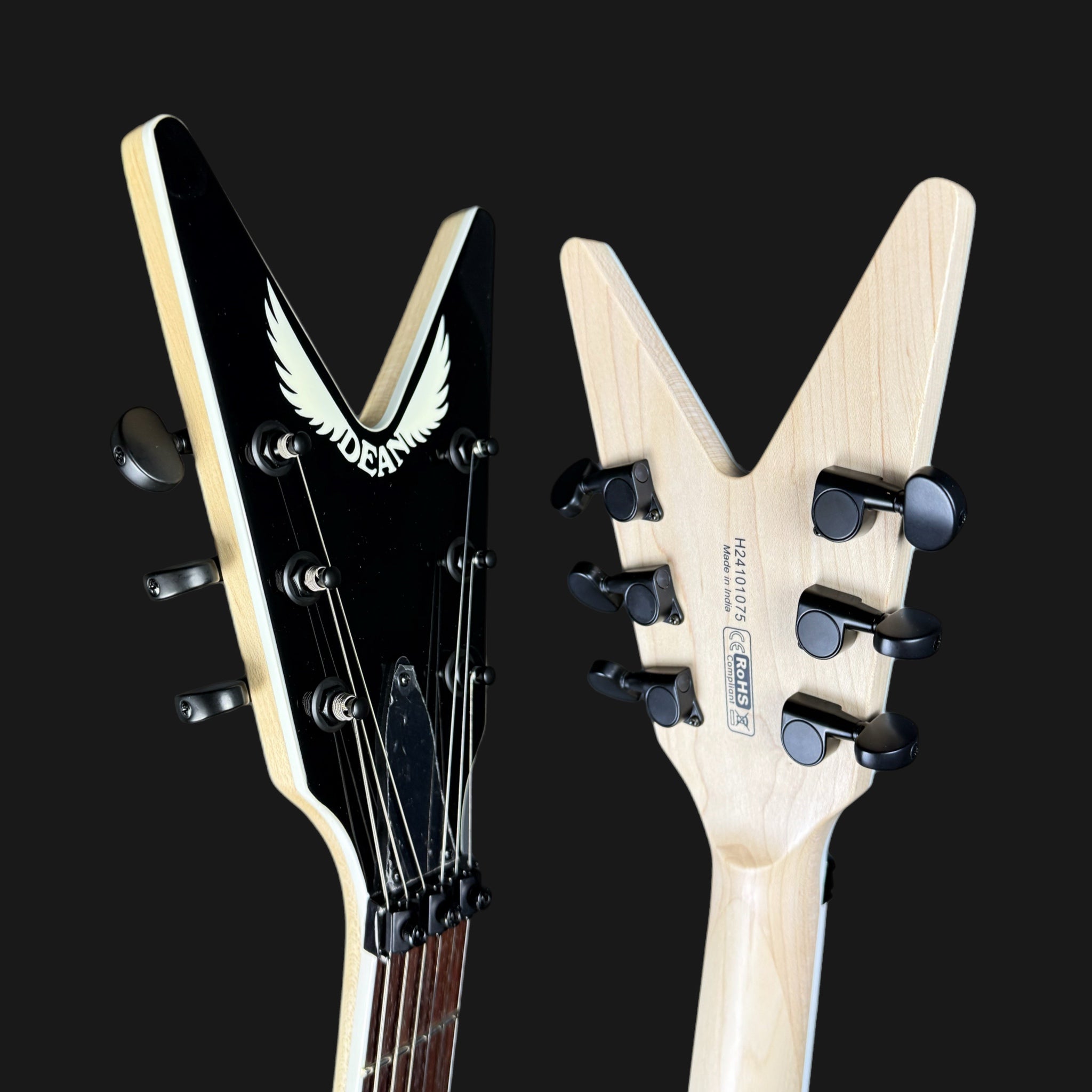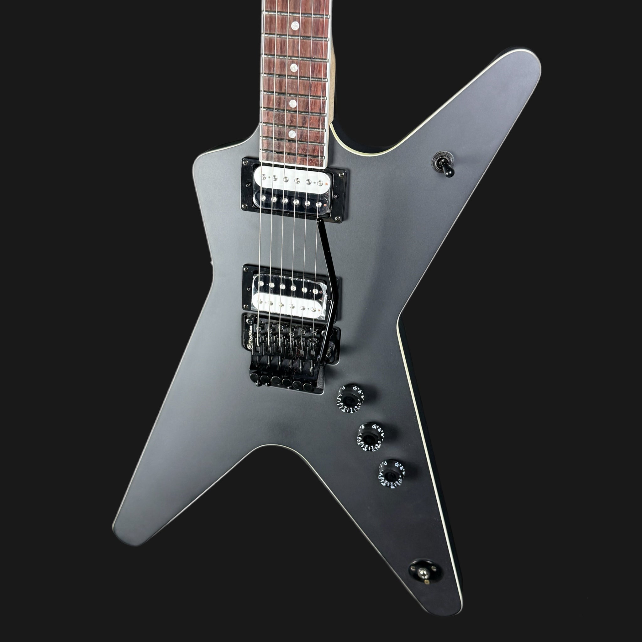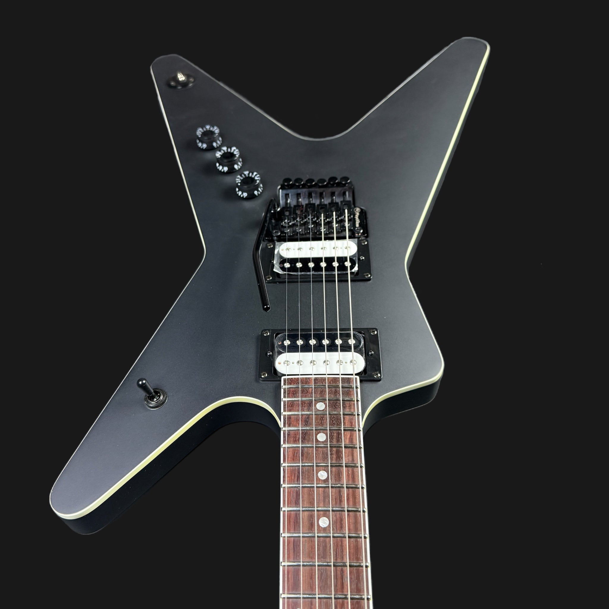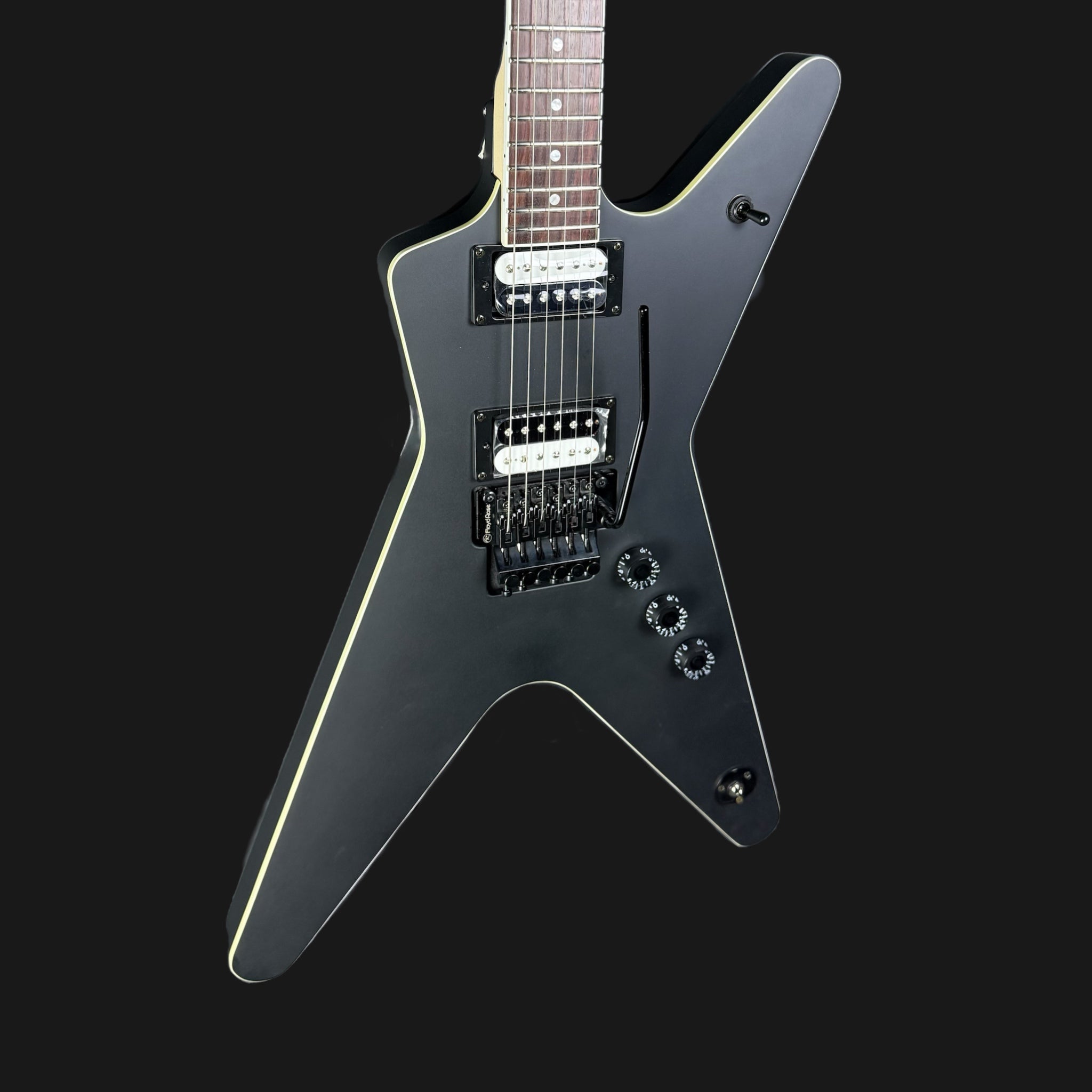 The Dean X- Series line offers all the quality features and aesthetics of High-end Deans, but at a price anyone can afford. The ML X features: a bolt on 22 fret maple neck with Indian Rosewood Fingerboard as well as white binding on the body, neck, and headstock. The DMT Designed High Output Zebra Pickups offer everything you need as a beginner or a seasoned pro. All of these features are finished off by a Floyd Rose FR20 Tremolo system and Satin black finish to provide the perfect blend of class and boldness.