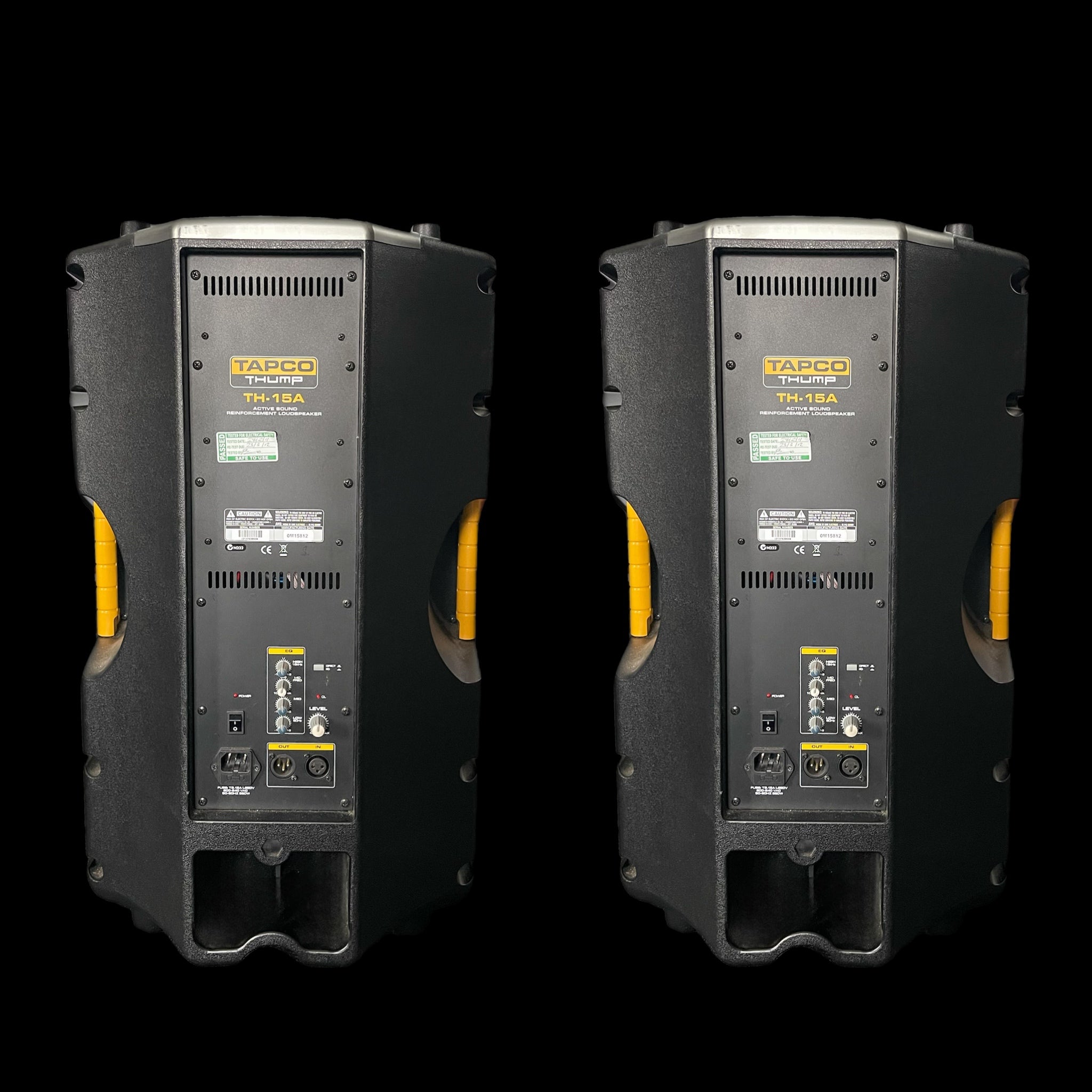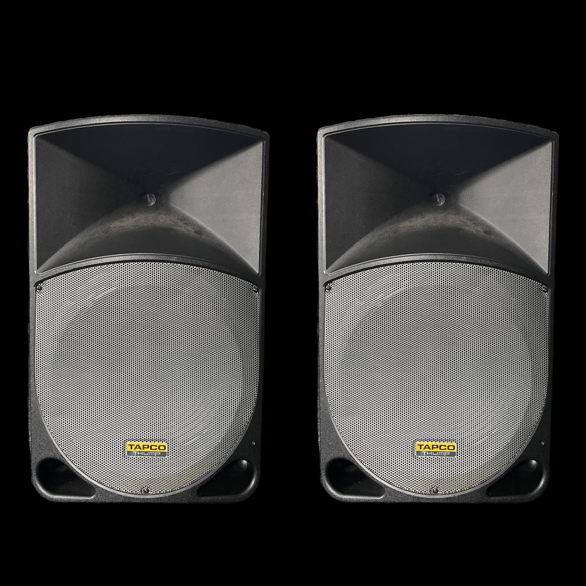 TH-15A Active loudspeakers put out a tremendous amount of sound for their size and price tag. The two-way bass reflex (ported) design generates ample quantities of chest-pounding bass, and its 1" compression driver ensures smooth, wide dispersion. Tapco even inserted a 3-band equalizer at the input to give you all the tonal control you could ever want, with an available 15dB boost or cut at 80Hz (for the Lows), 100Hz to 8kHz (sweepable Mids) and 12kHz (for the Highs). With the TH-15A's extremely versatile EQ, you can add some extra thump to that kick drum, bring out the sizzle in your hi-hats and add pop to vocals.