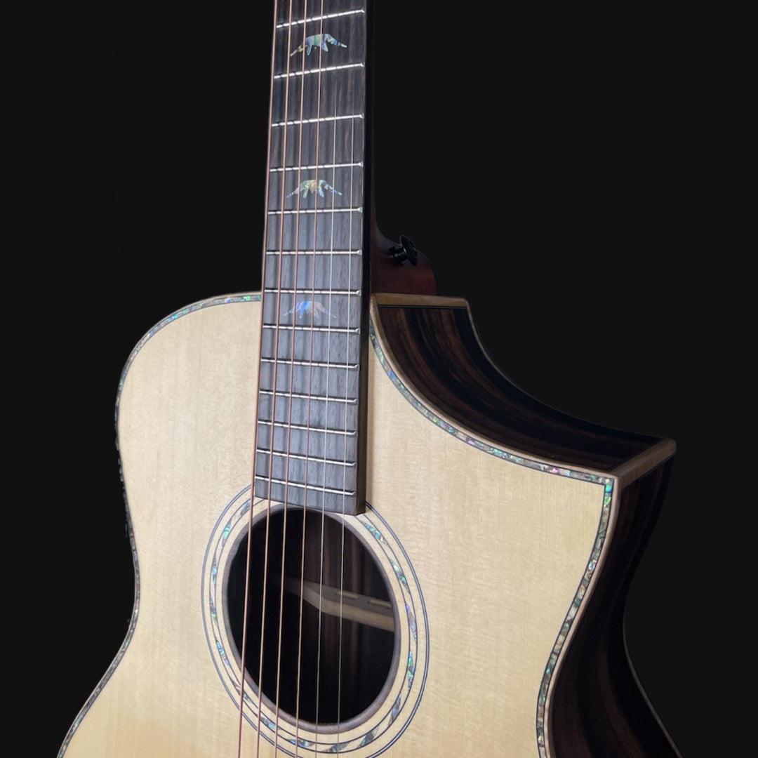 - Soundhole inlay: "Cowboy Rope" Abalone