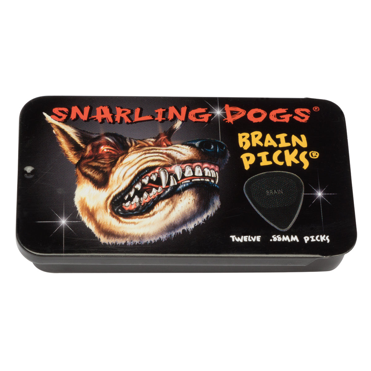 D'Andrea 351 Snarling Dogs Brain Black Pick Tin ~ .88mm ~ 12 Picks.