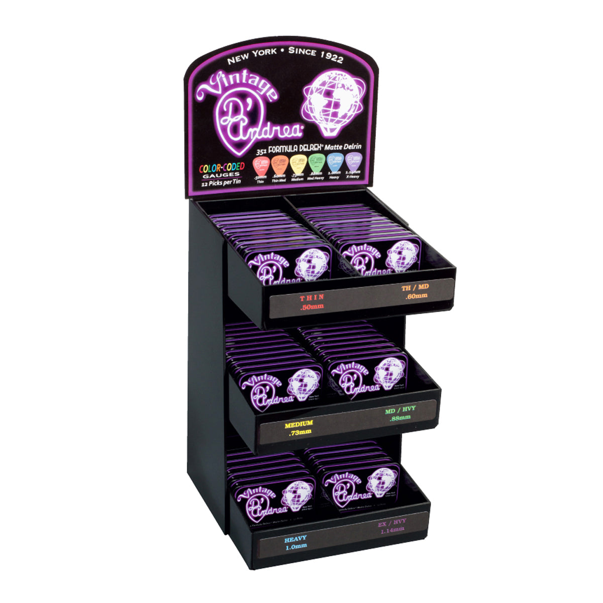 D'Andrea Delrex Pick Tin Display ~ 60 Tins ~ 12 Picks/Tin.