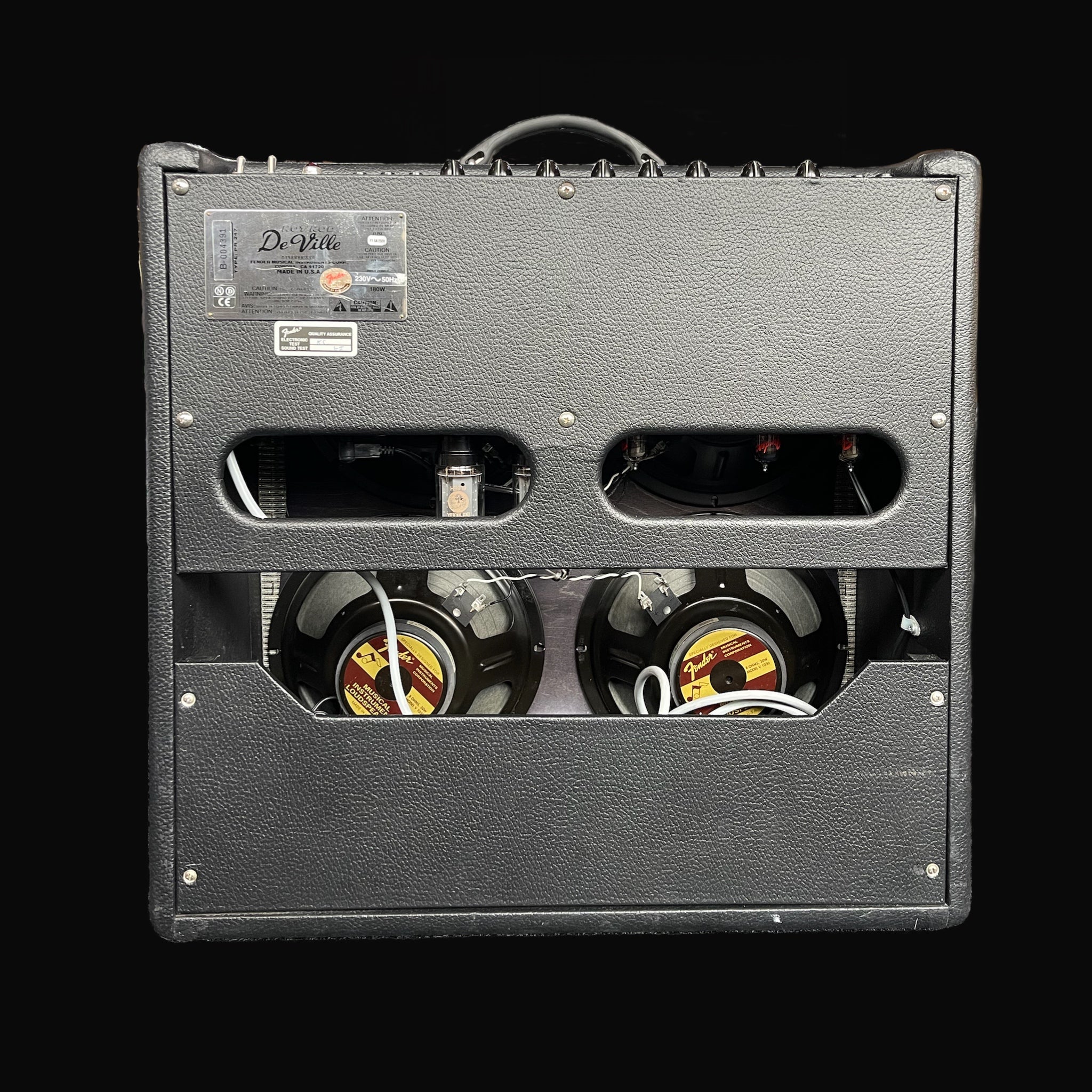 The Fender Hot Rod DeVille 410 4 x 10″ guitar combo sends 60 watts straight into 4 x 10″” Fender Special Design Eminence speakers, courtesy of two 6L6 output tubes and three 12AX7 preamp tubes.