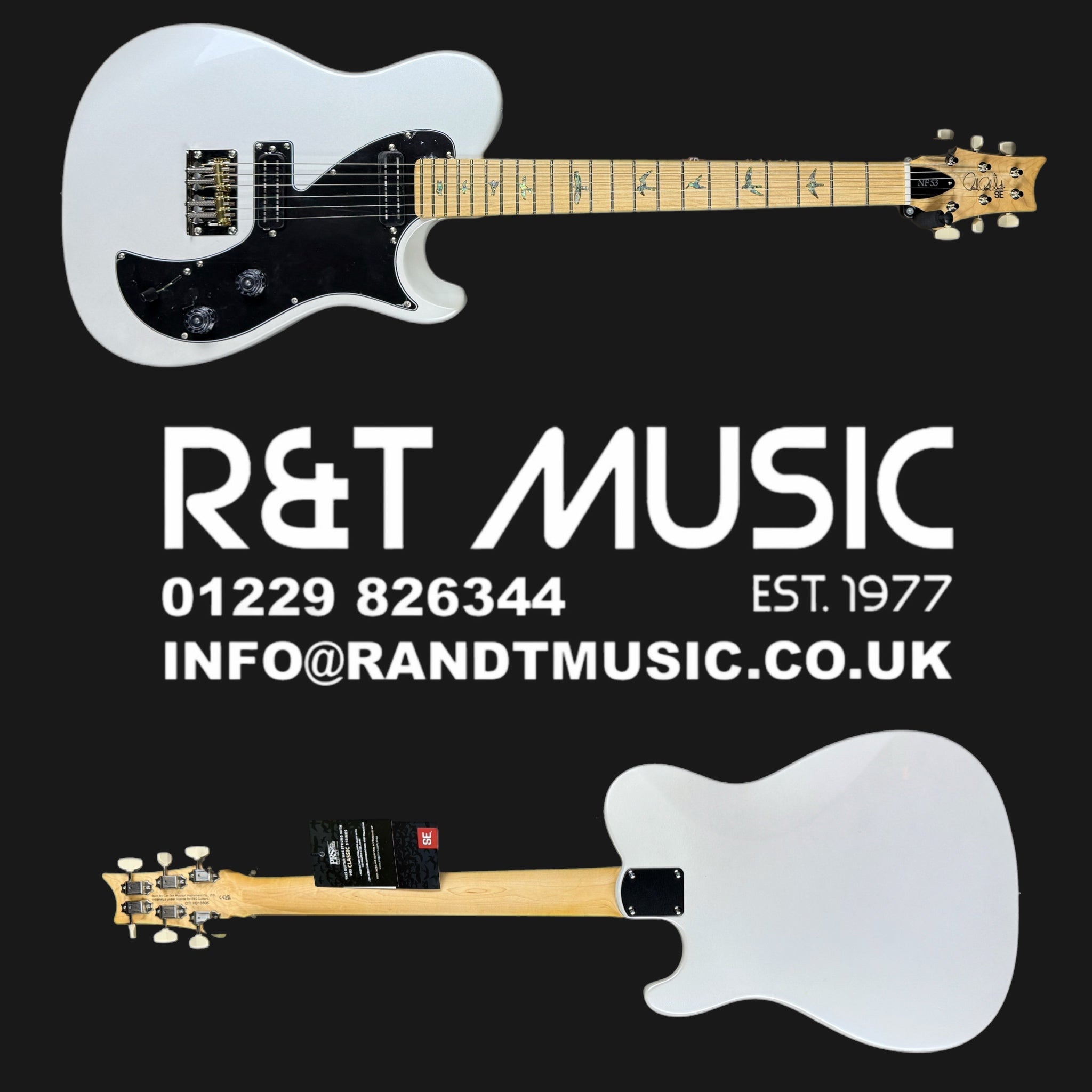 The PRS SE NF53 is a versatile electric guitar designed to deliver classic tones with modern performance. Built with a swamp ash body and a 25.5" scale length bolt-on maple neck and fretboard, it offers a balanced feel and bright, resonant sound. The 22-fret neck with a 10" radius provides smooth playability across the fingerboard, while the abalone bird inlays add a signature PRS aesthetic. The nut width of 1 41/64" ensures comfortable string spacing, making it suitable for a wide range of playing styles.